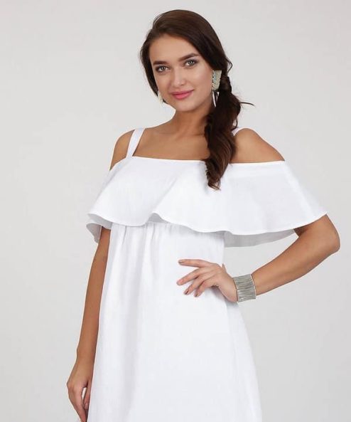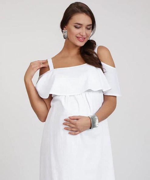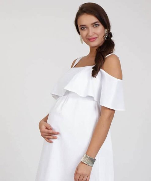 Молодежный сарафан для беременных и кормящих из хлопка с эффектом жатки на подкладе. Игривый волан по плечам кокетливо обнажает плечи, при этом маскируя руки и скрывая секрет для кормления — потайные молнии в нагрудных рельефах. Свободный фасон и легкая дышащая ткань обеспечат полный комфорт в летнюю жару, при этом благодаря супер актуальным деталям фасона позволят вам быть на пике модных тенденций.