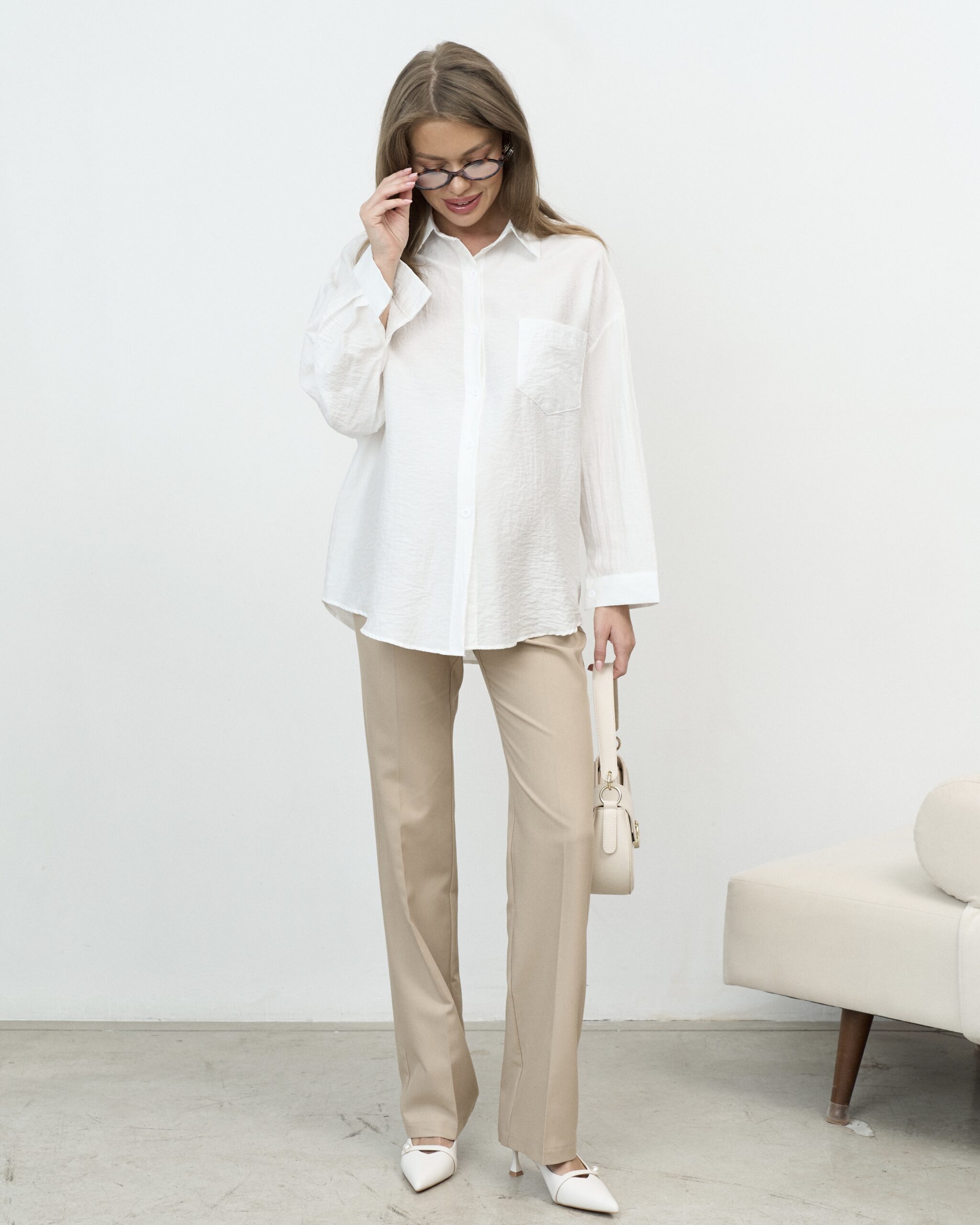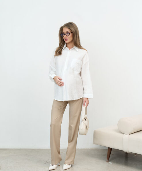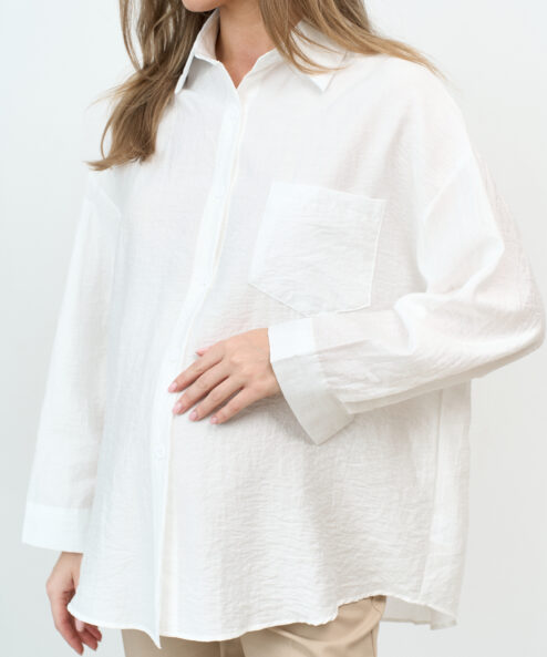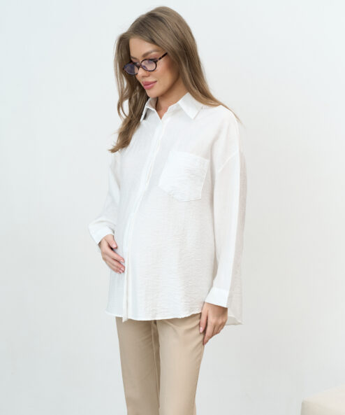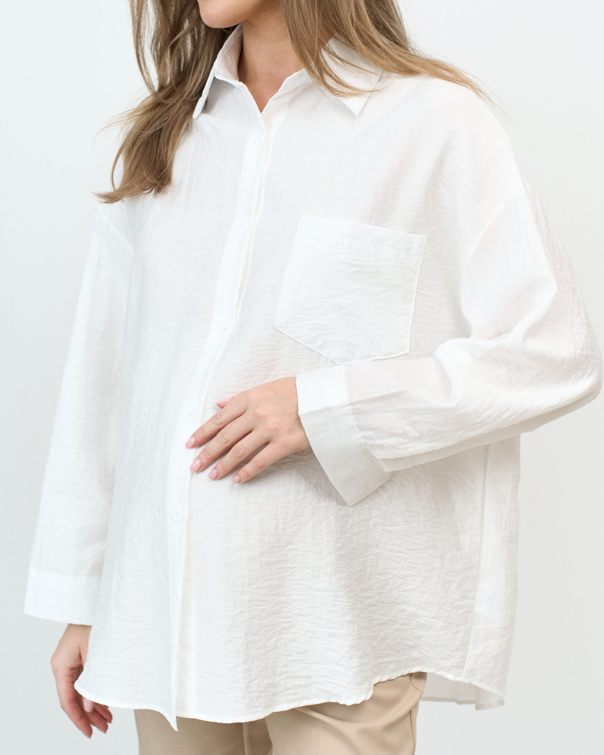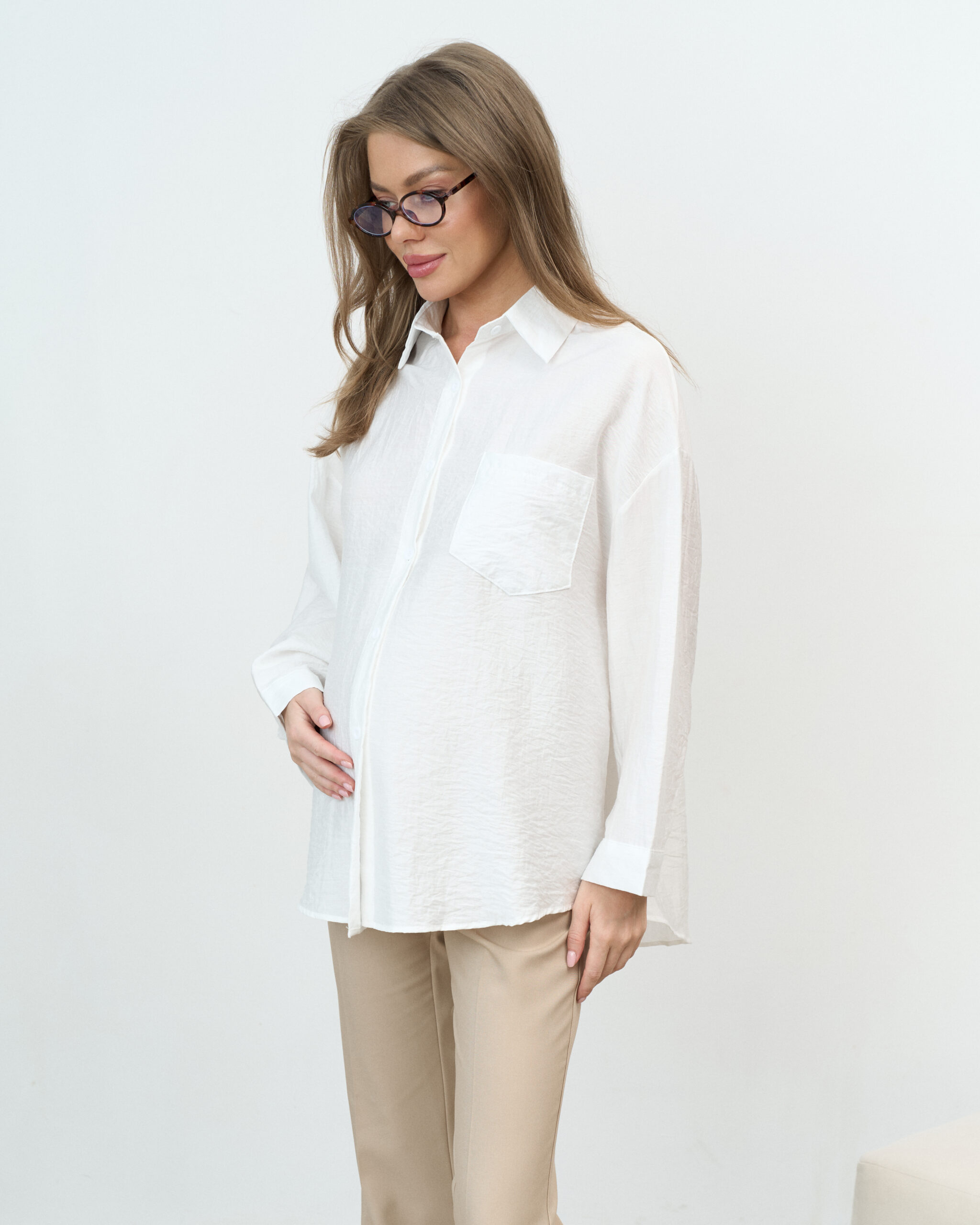 Стильная удлиненная рубашка оверсайз для беременных и кормящих мам. Для кормления пуговицы расстегиваются.