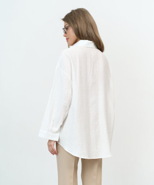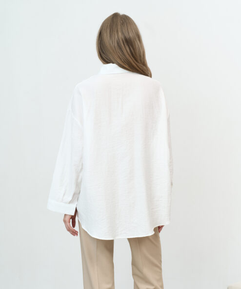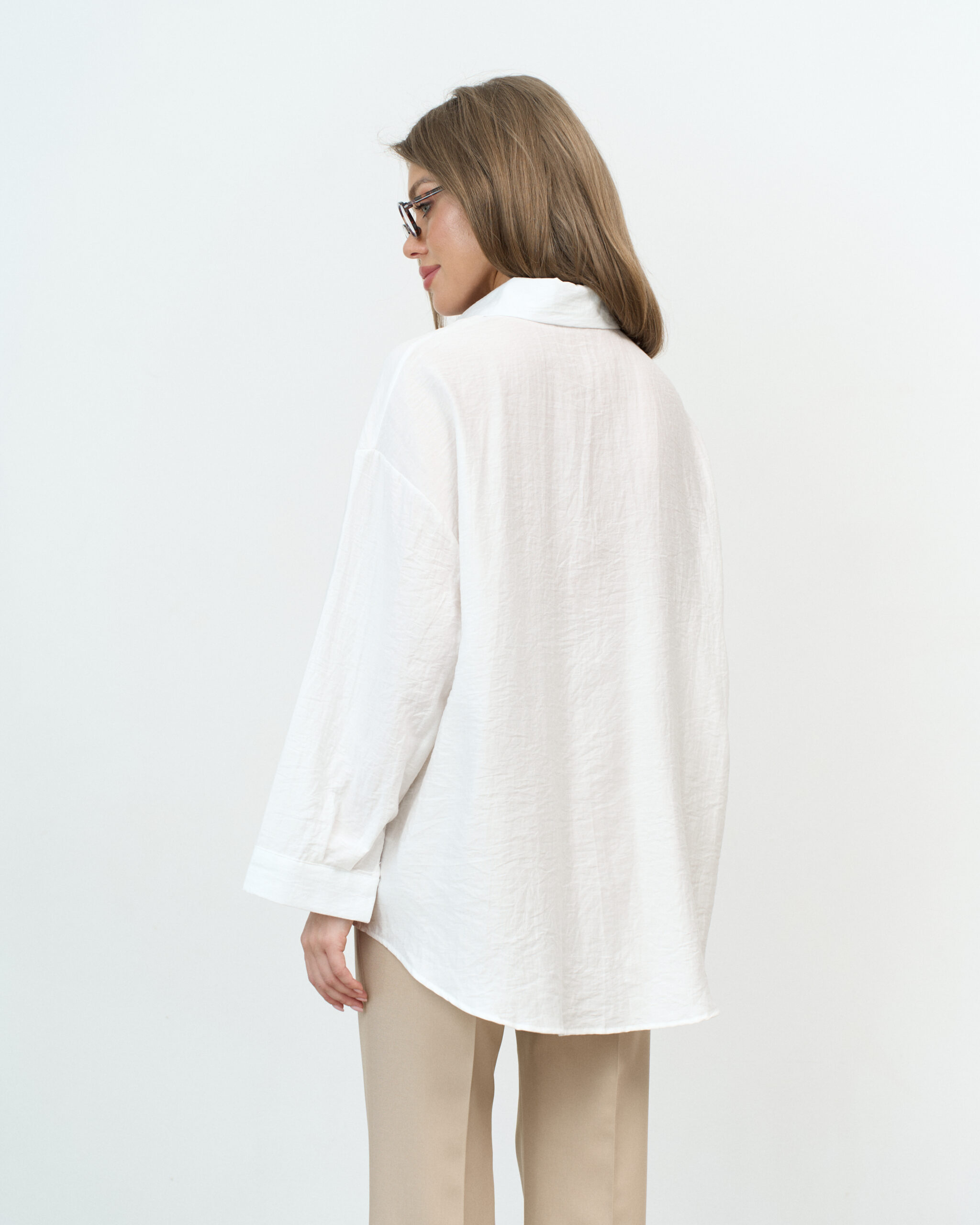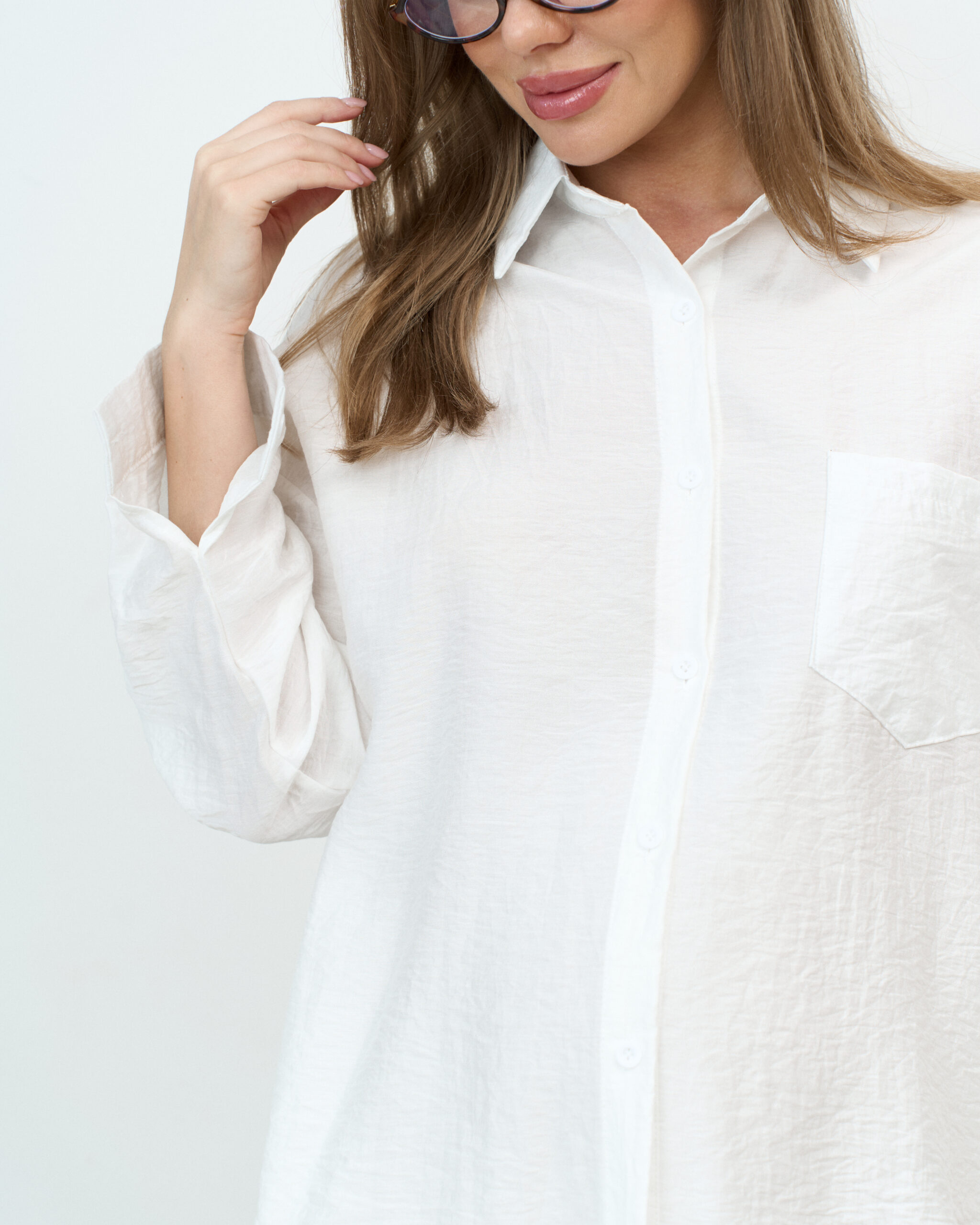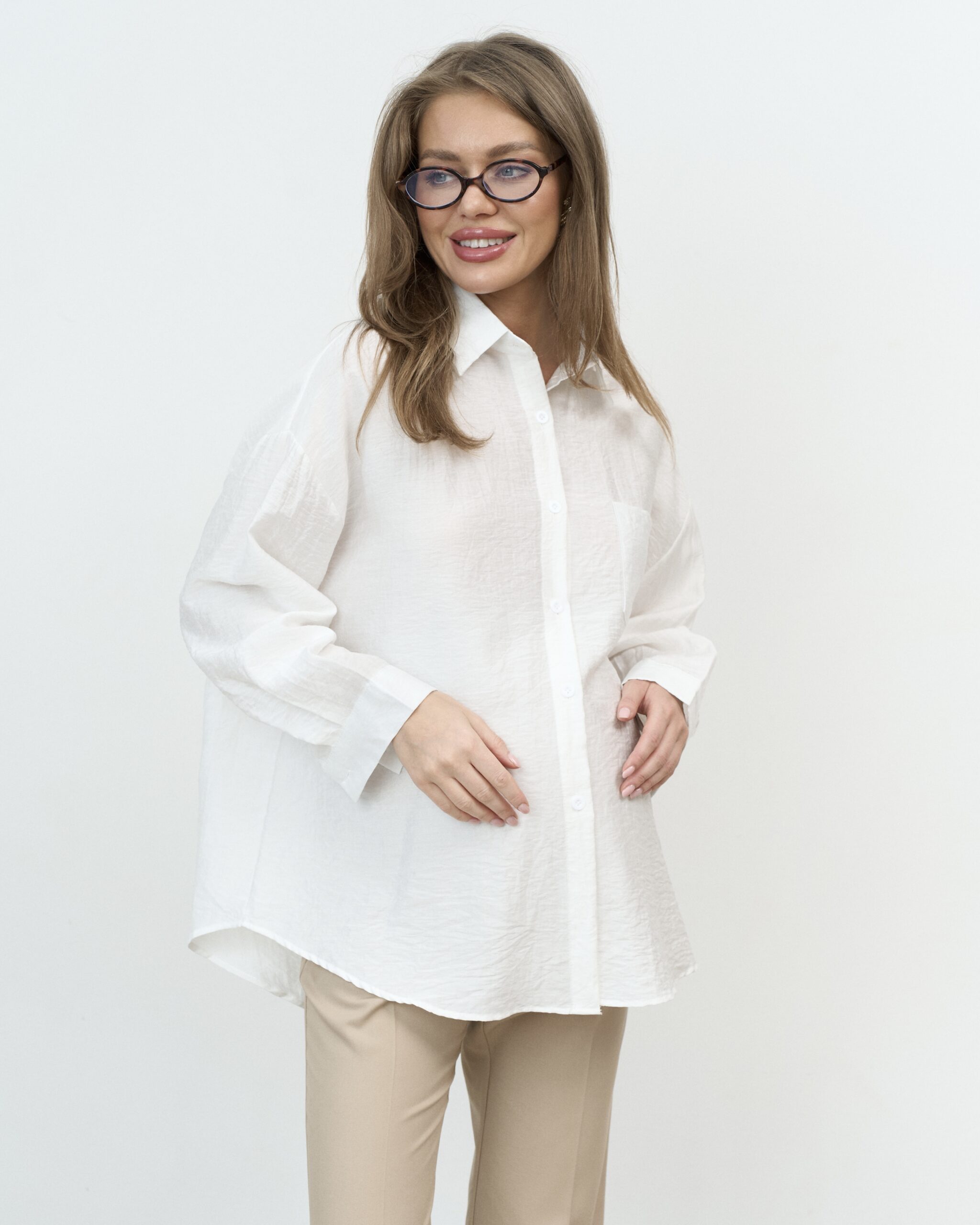 Стильная удлиненная рубашка оверсайз для беременных и кормящих мам. Для кормления пуговицы расстегиваются.