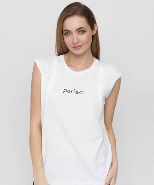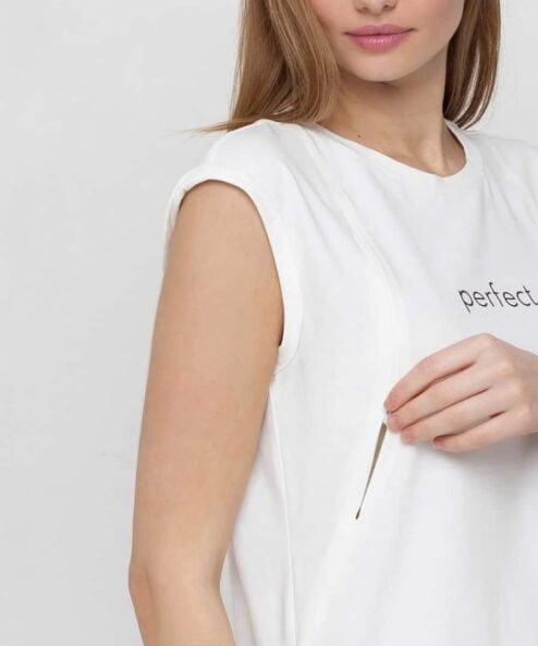 Трикотажная футболка со спущенным плечом для беременных и кормящих мам с принтом.
