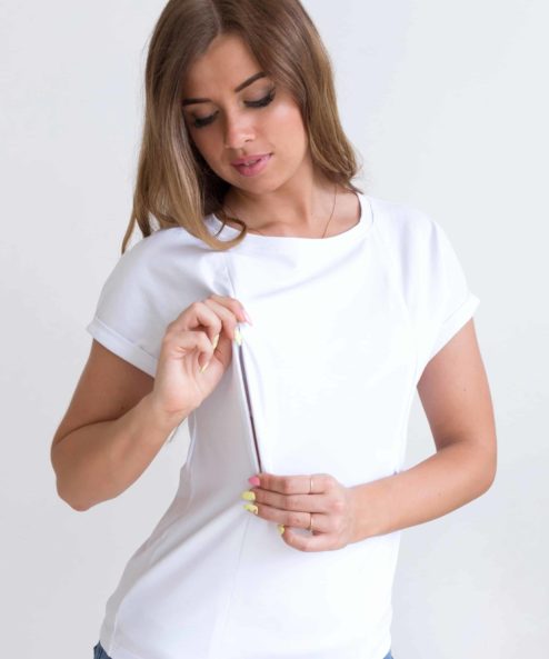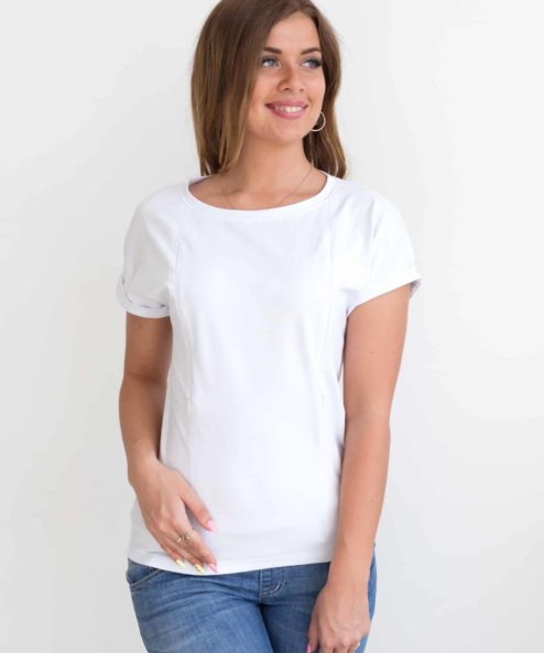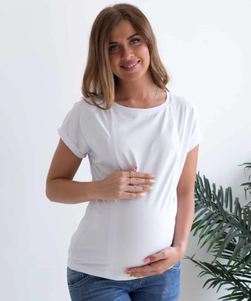 Белая футболка для будущих и кормящих мам Every