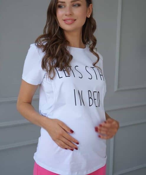 Белая футболка для будущих и кормящих мам Sleep
