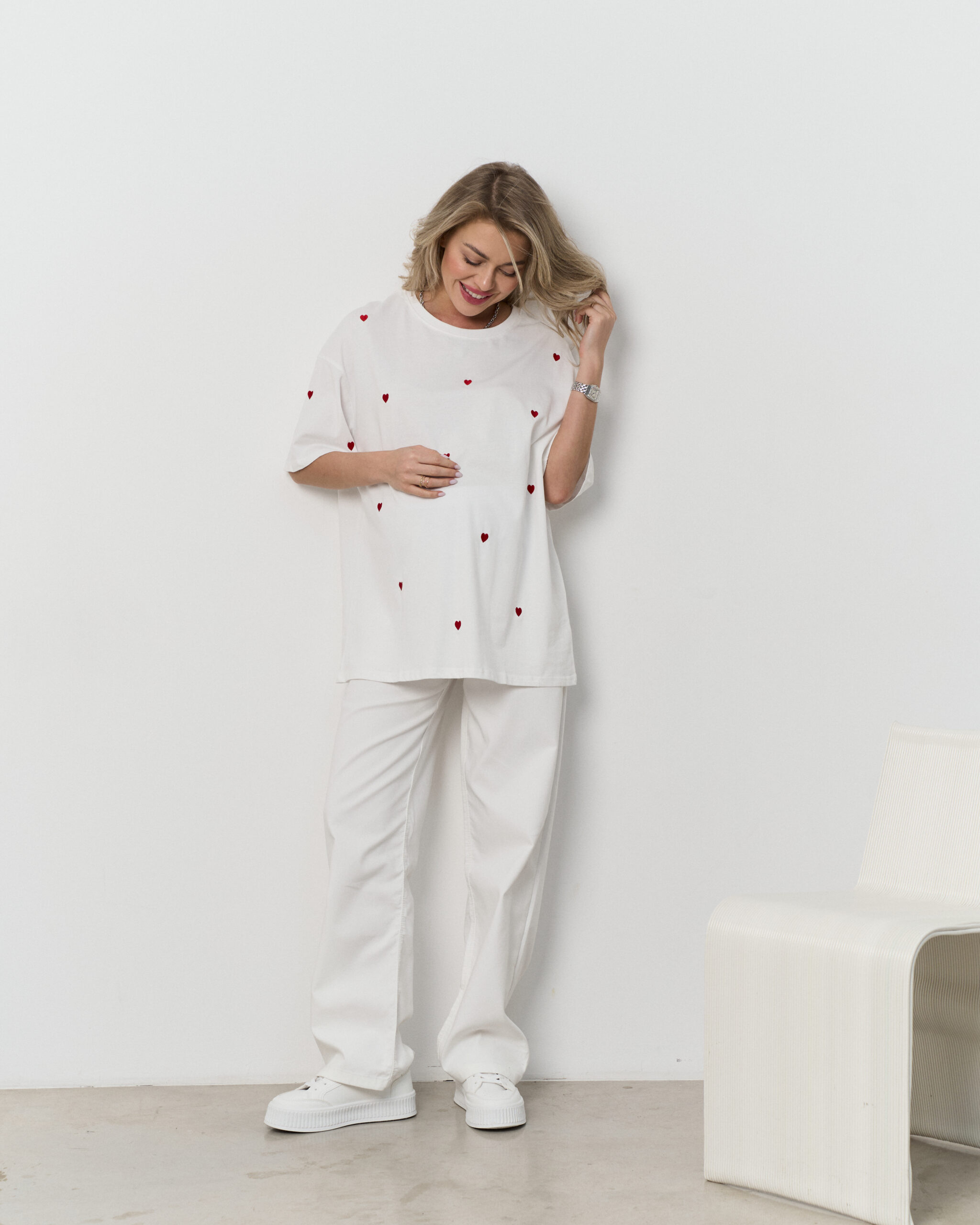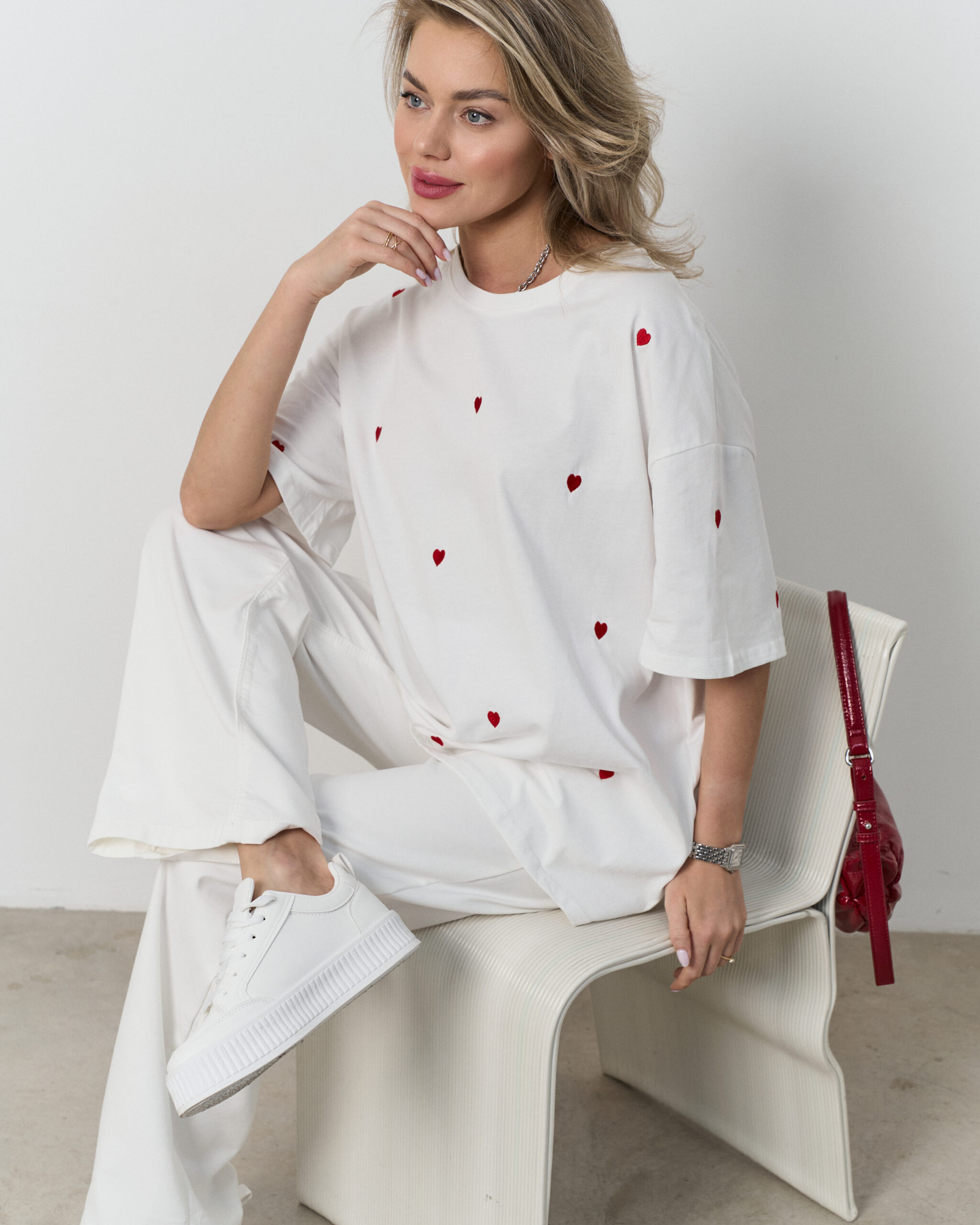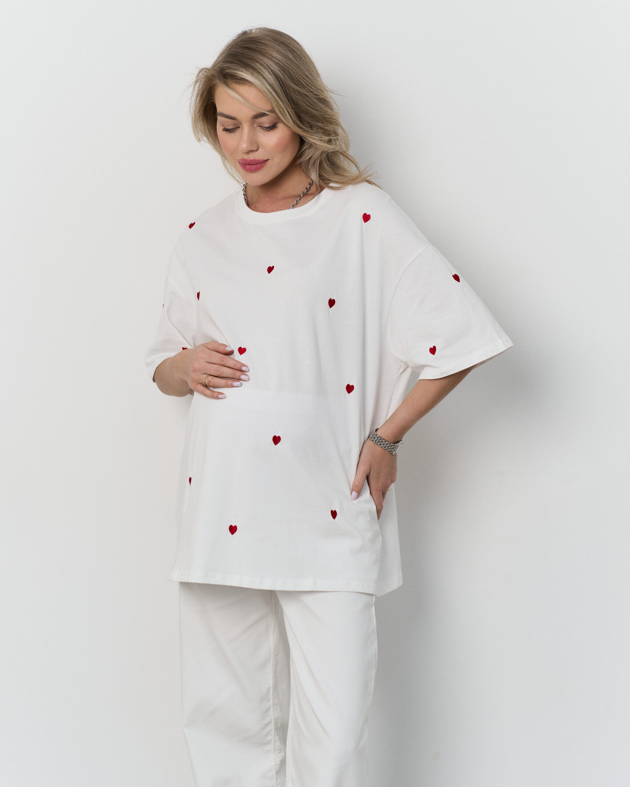 Белая футболка-оверсайз Hearts