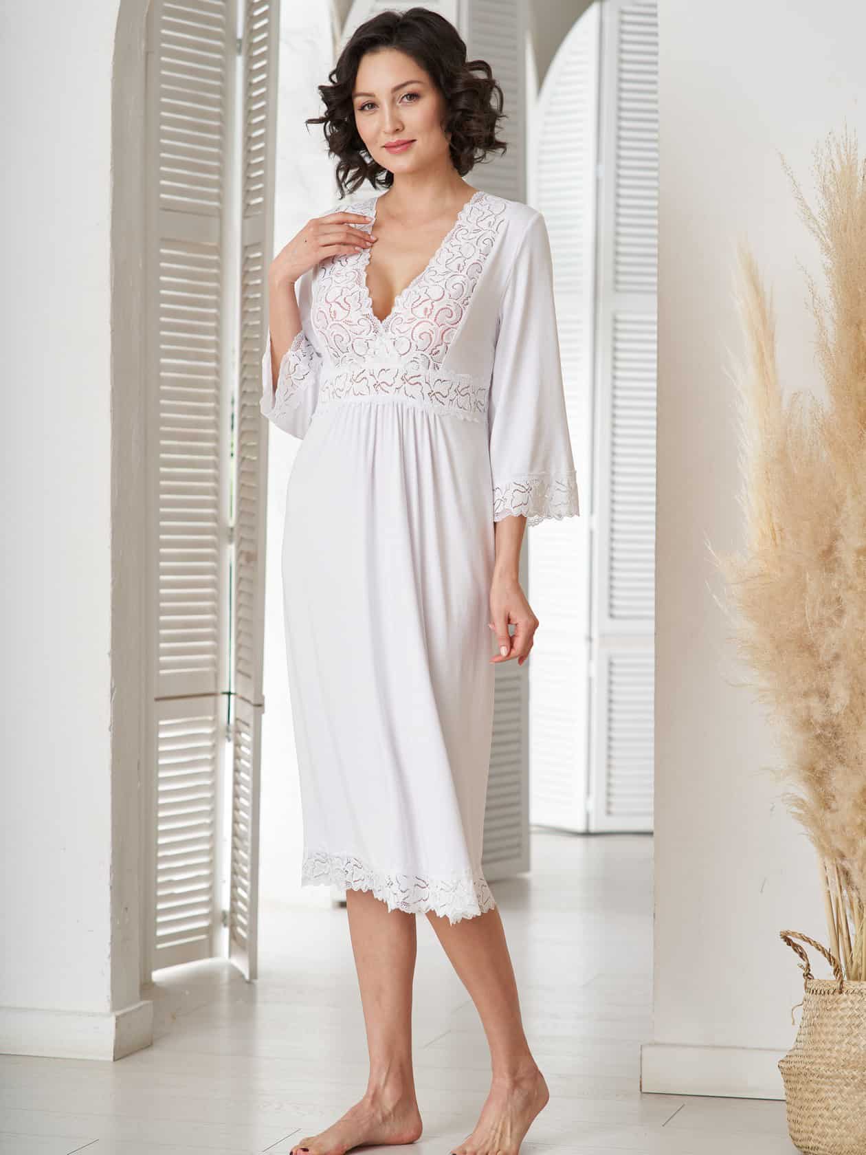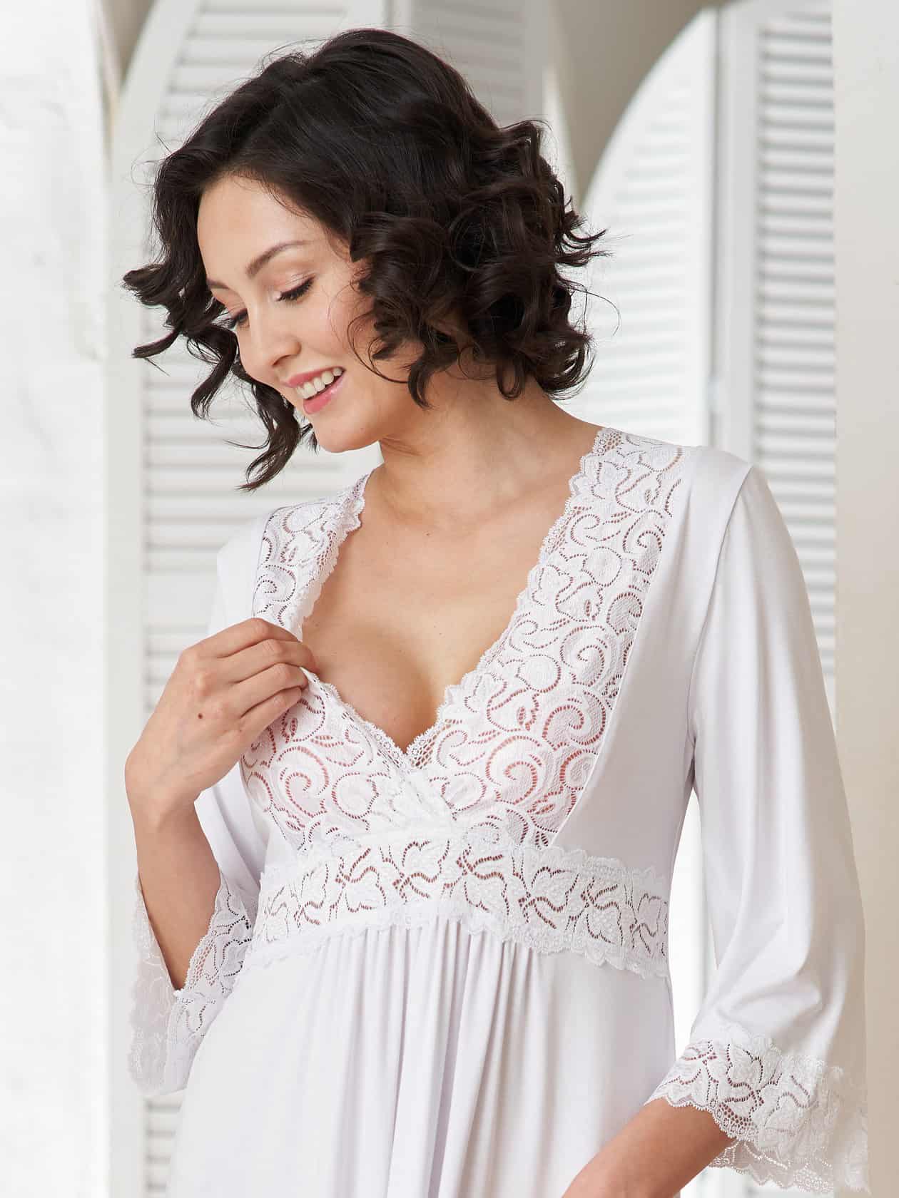Нежная сорочка для будущих и кормящих мам с кружевом и секретом для кормления малыша — запАх. Отличный вариант для дома и роддома.