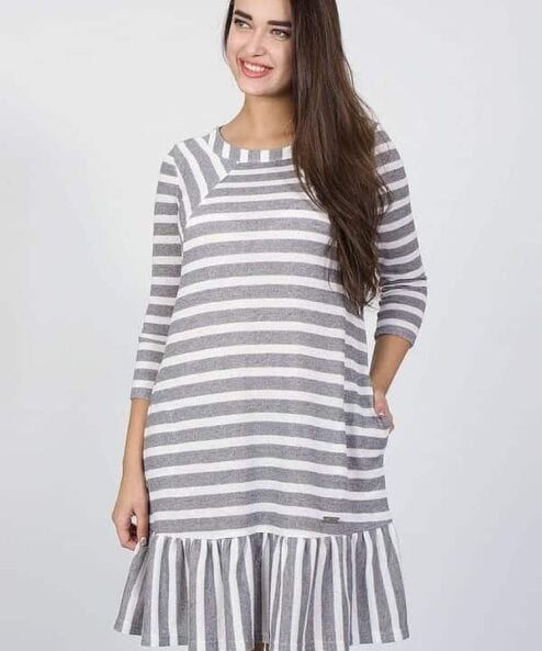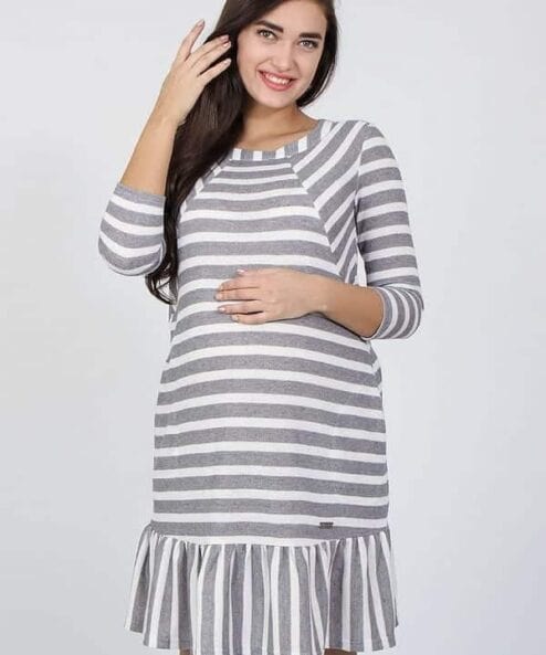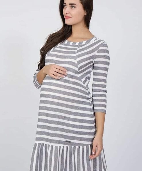 Бело-серое платье для будущих и кормящим мам Lina