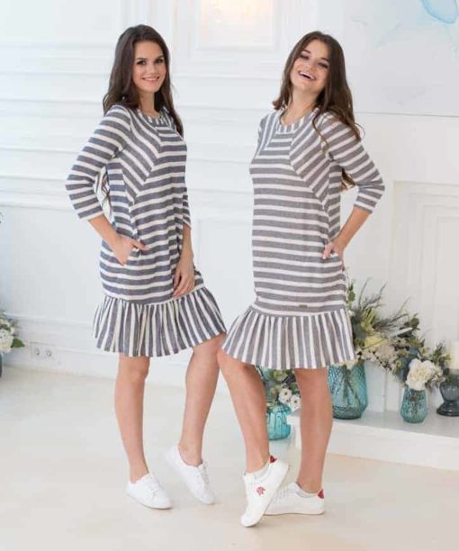 Платье-колокольчик из тонкой полосатой трехнитки для беременных и кормящих мам — как будто специально создано для этой весны. Ультрамодный фасон с озорной оборкой по низу изделия и изящным вырезом-капелька на спине, в сочетании со свободным кроем, дарящим свободу движений и скрадывающим округлости, и, конечно, наличием секрета кормления (потайные молнии в нагрудных рельефах) — это 100% хит и must have этого сезона!