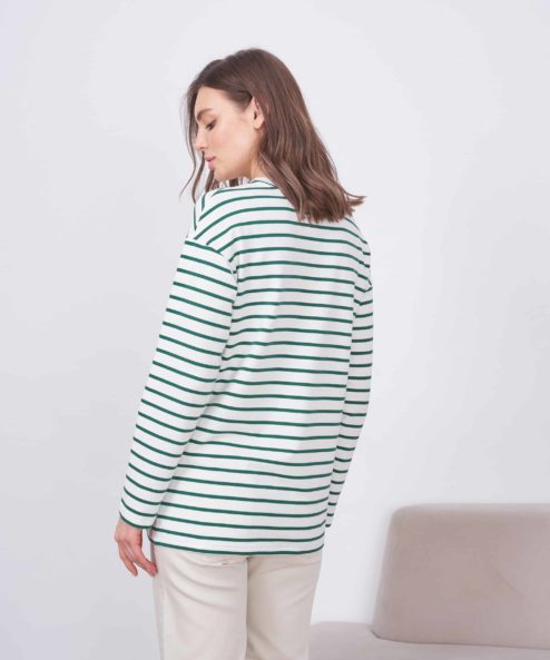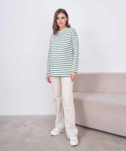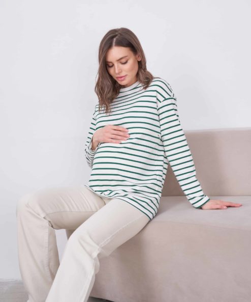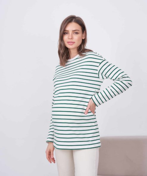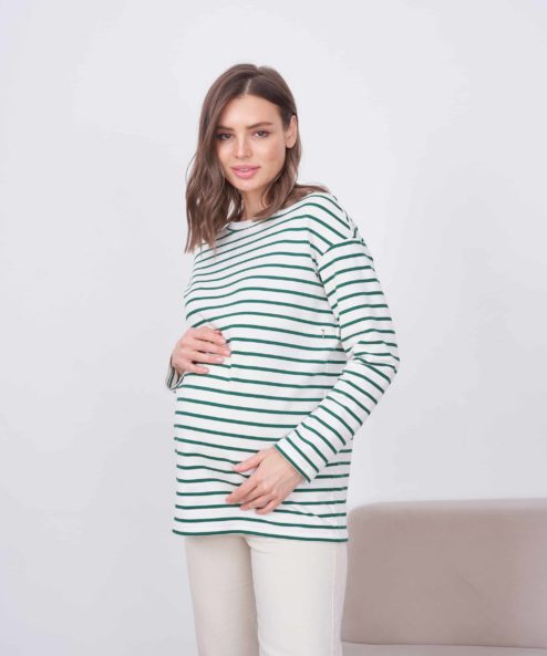 Бело-зеленая тельняшка для будущих и кормящих мам Marina