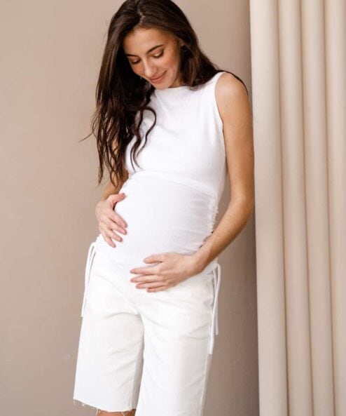 Белые джинсовые шорты для будущих и кормящих мам Linda