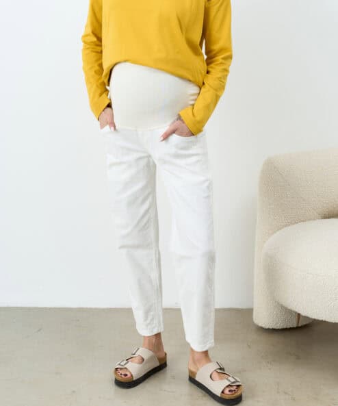 Стильные джинсы-moms для беременных из плотной джинсы — отличный вариант для любого времени года. Удобная и комфортная модель на все случаи жизни. Специальный трикотажный пояс с регулировкой объема позволяет носить эту модель всю беременность.
