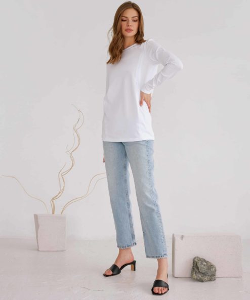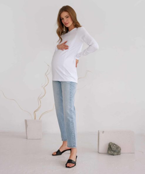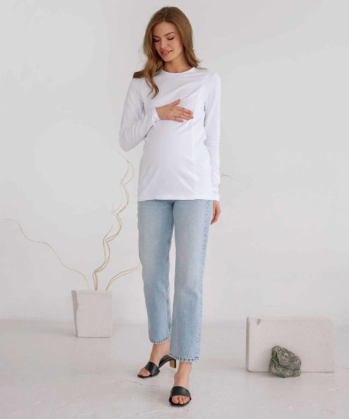 Белый лонгслив для будущих и кормящих мам Simple