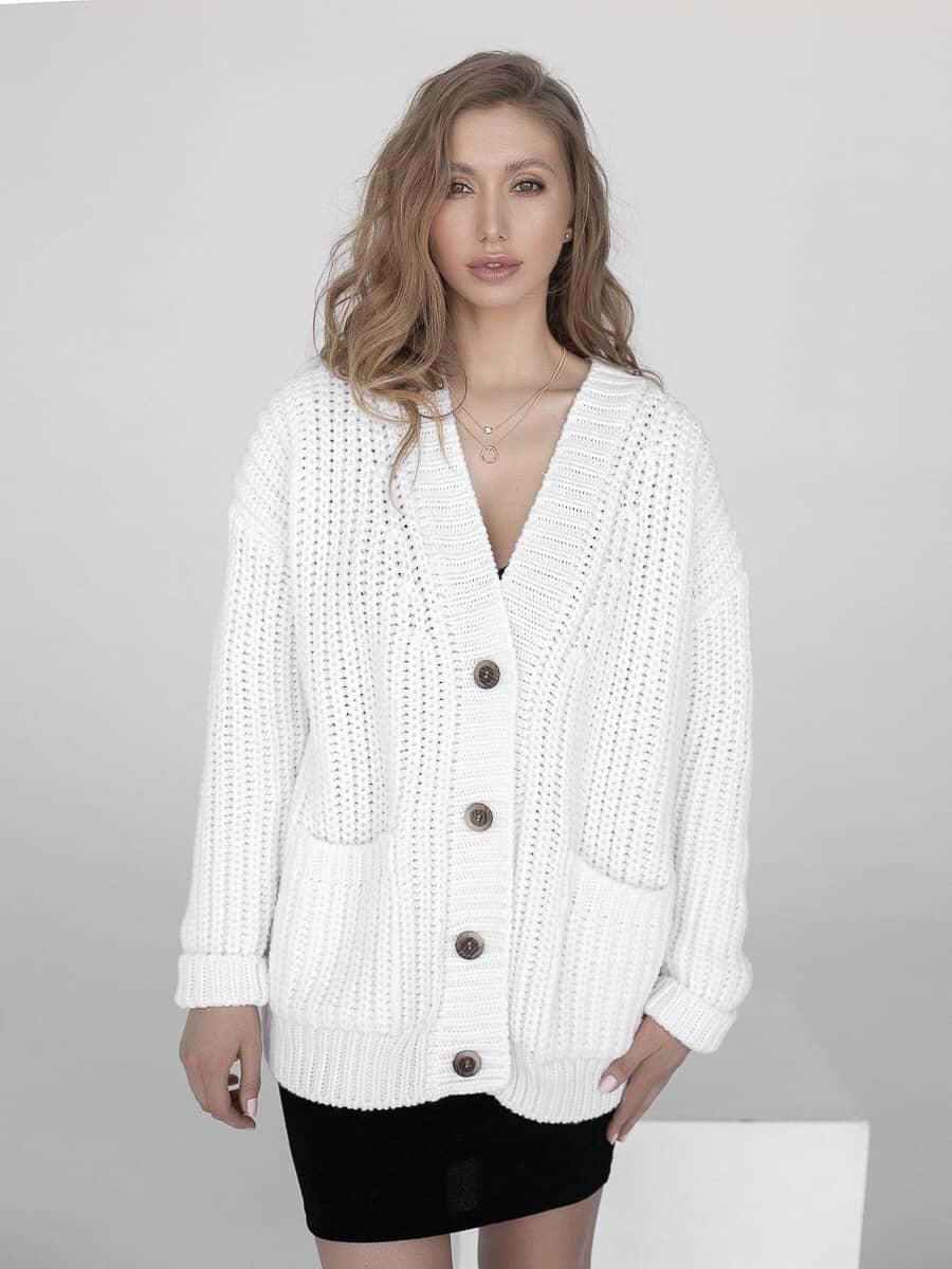 Белый кардиган с карманами и пуговицами Funky