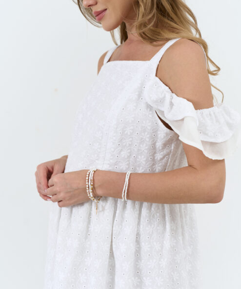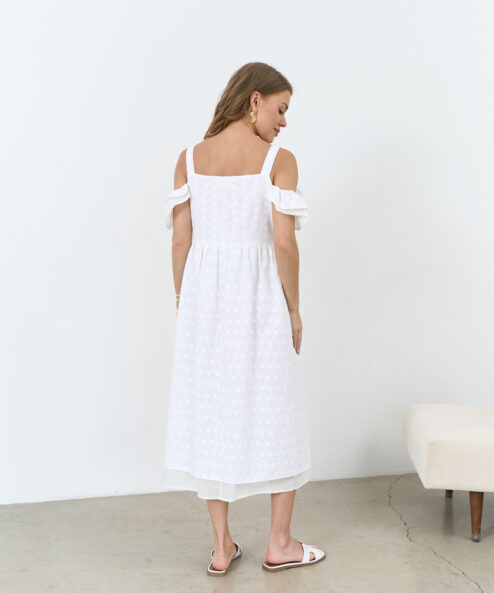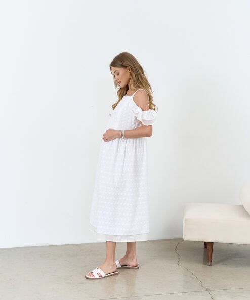 Романтичное платье для беременных и мам кормящих грудью. Модель выполнена из натурального коттонового полотна прошвы особого покроя, отлично садится и на беременный животик на любом сроке, и после рождения малыша. Присутствующие замаскированные змейки в нагрудных рельефах для быстрого и незаметного доступа к груди.