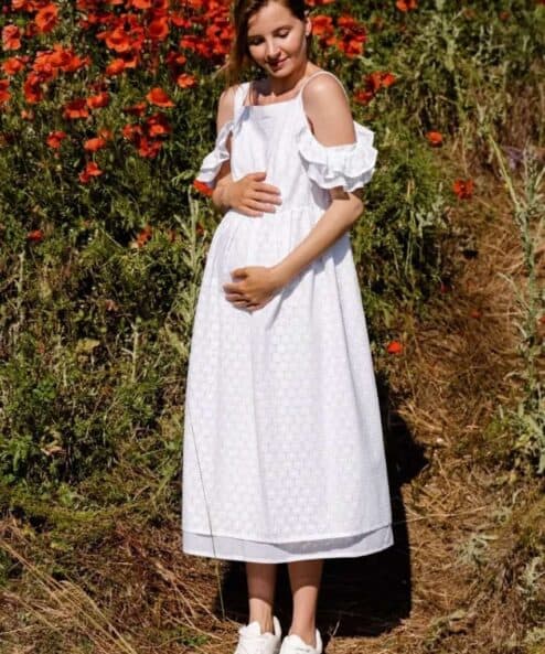 Белый сарафан для беременных и кормящих мам Violetta