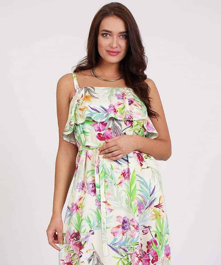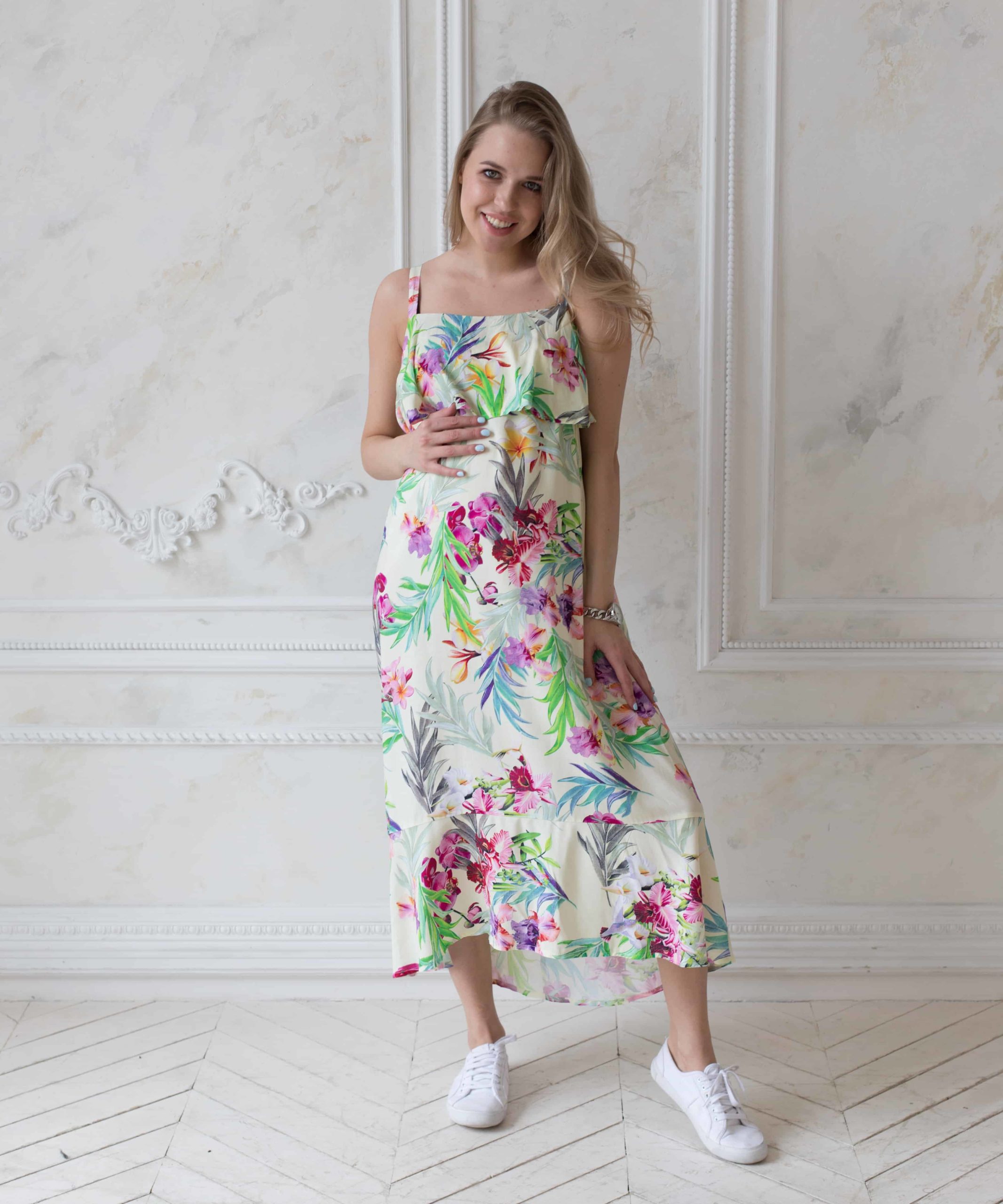 Белый сарафан с цветочным принтом для будущих и кормящих мам Rimini
