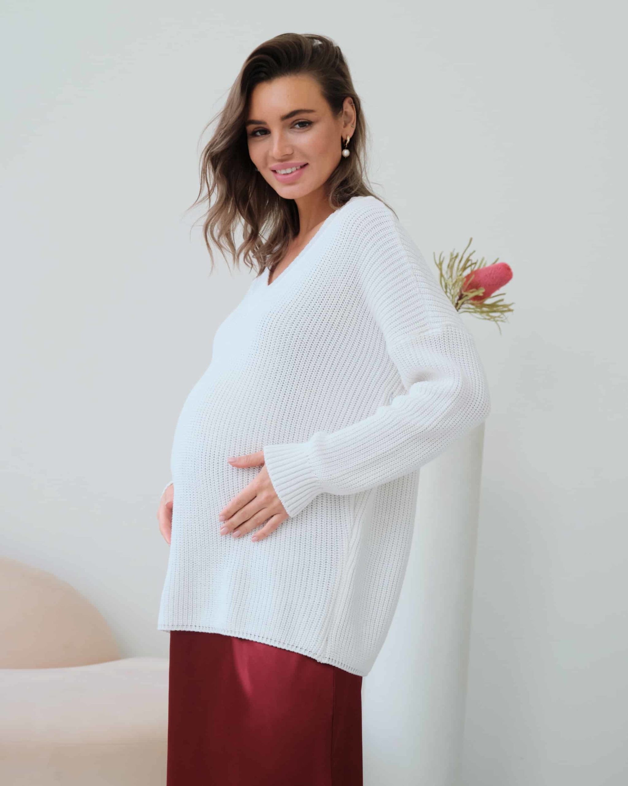 Белый свитер для будущих и кормящих мам Erika
