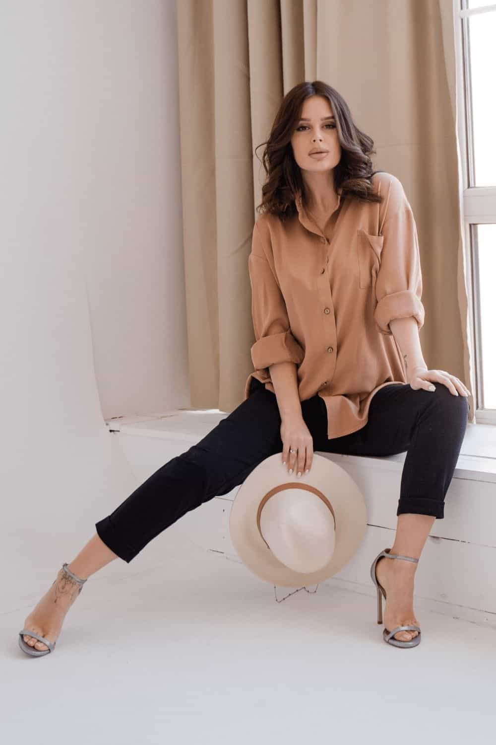Стильная удлиненная рубашка для беременных и кормящих мам. Такую рубашку можно носить как с классическими брюками, так и с джинсами в стиле casual. Для кормления пуговицы расстегиваются.