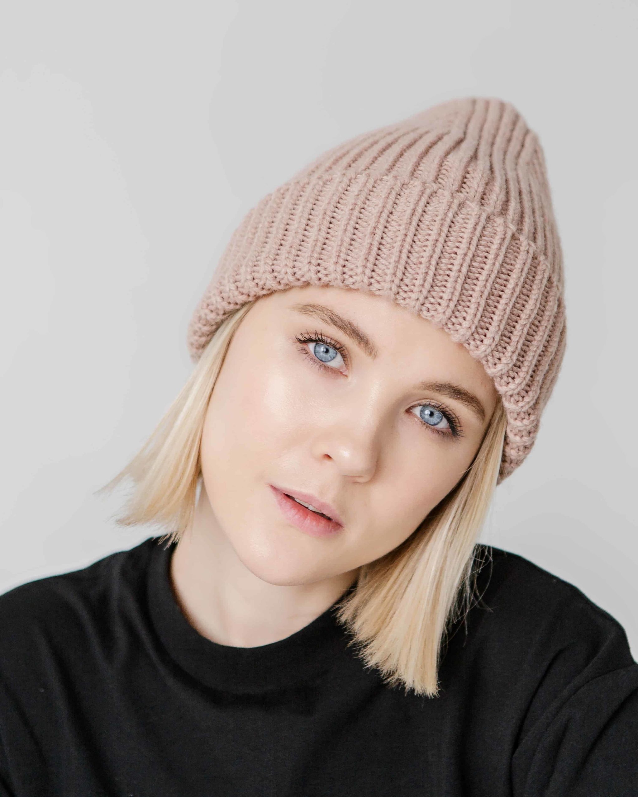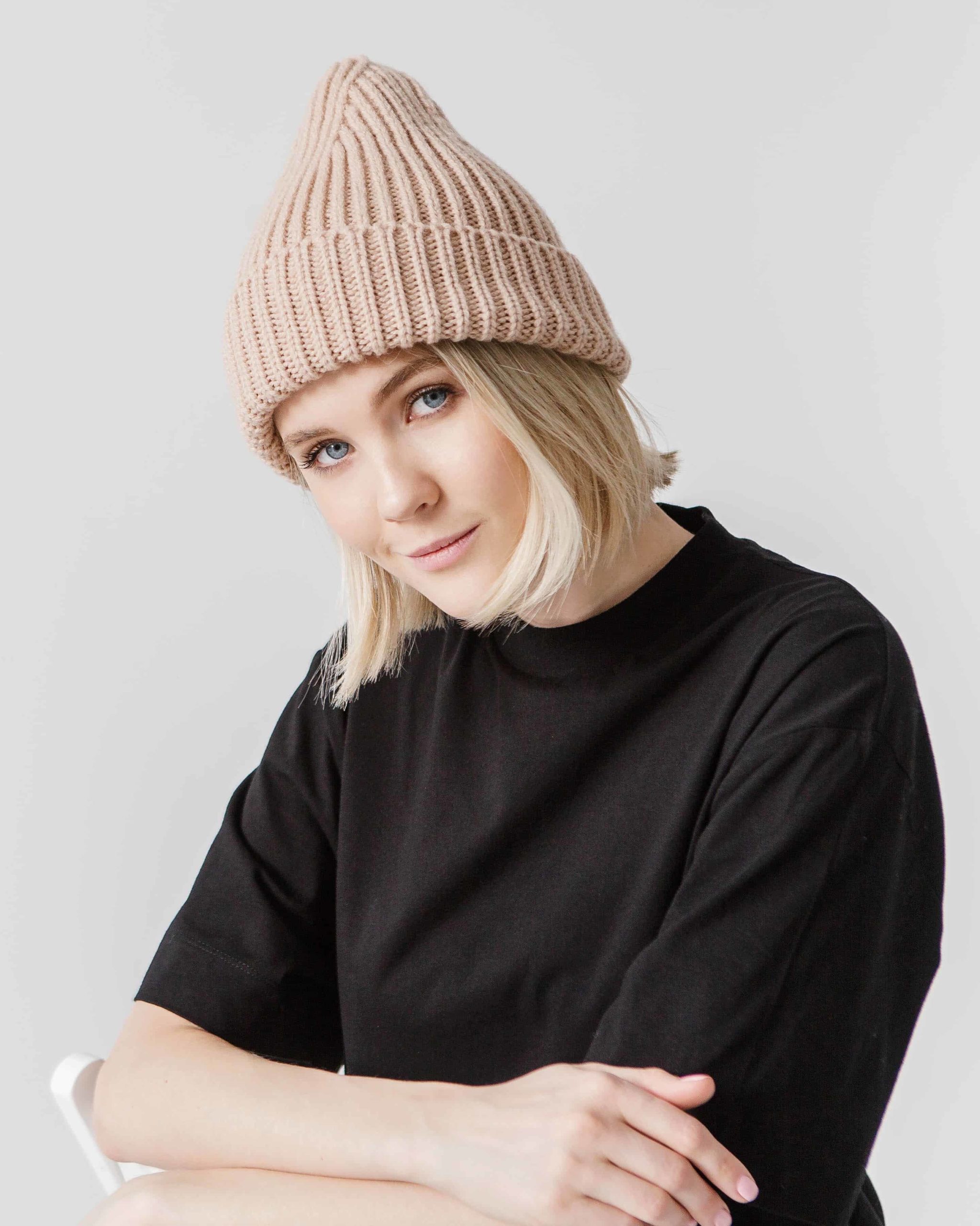 Шапка машинной вязки в современной форме бини. Не колется и не скатывается. Подходит на погоду от -20 до 10 градусов