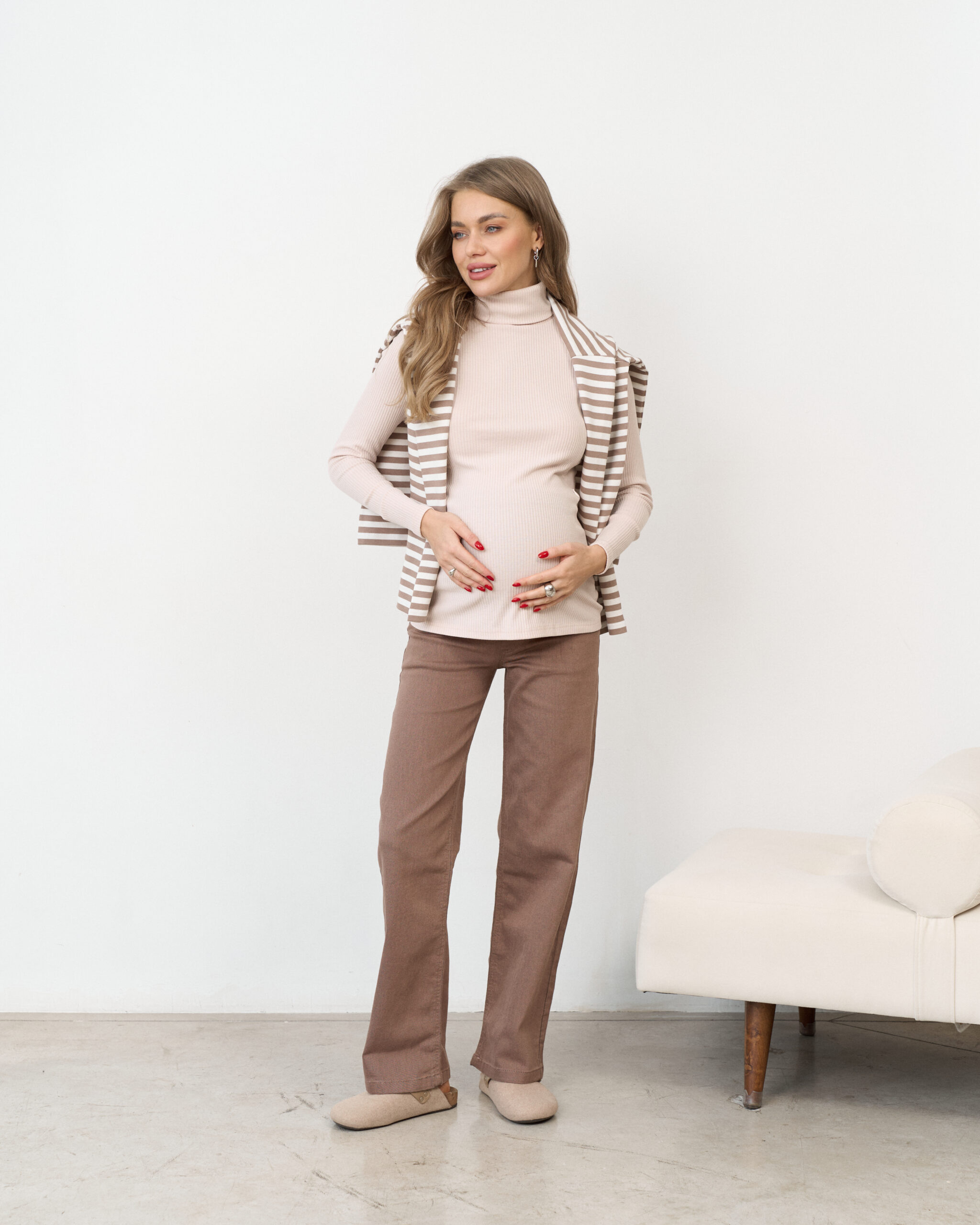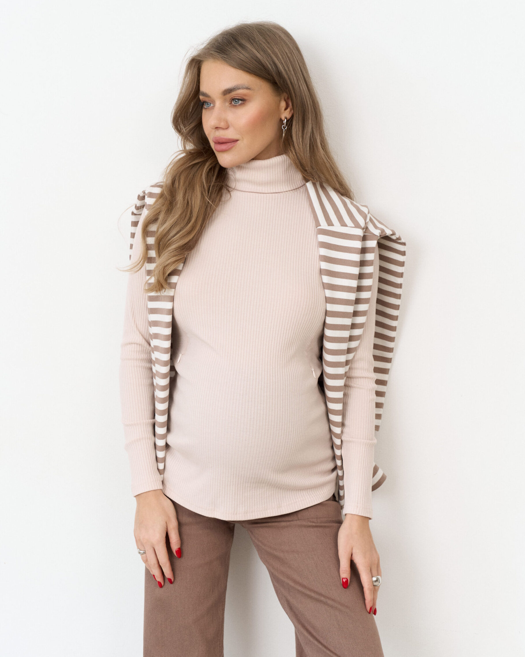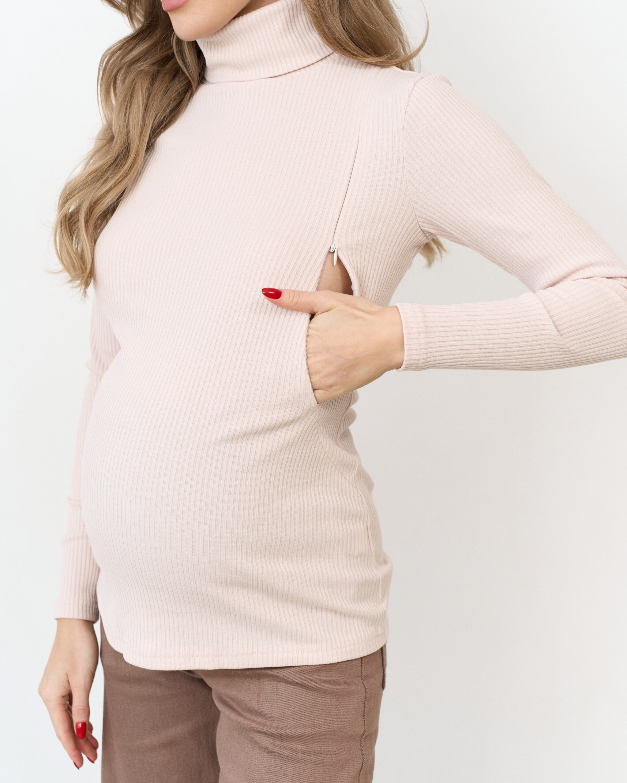 Бежевая водолазка для беременных и кормящих мам Tilda