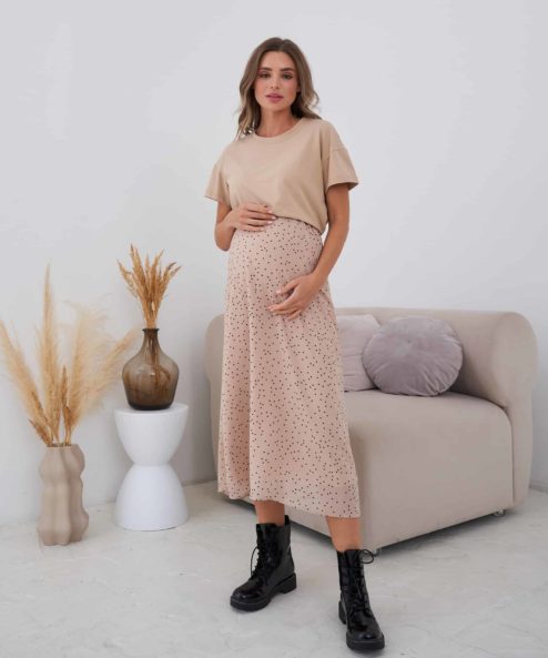 Бежевая юбка в горошек для будущих и кормящих мам Nessy