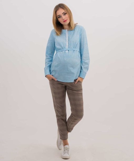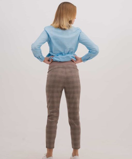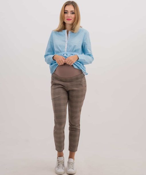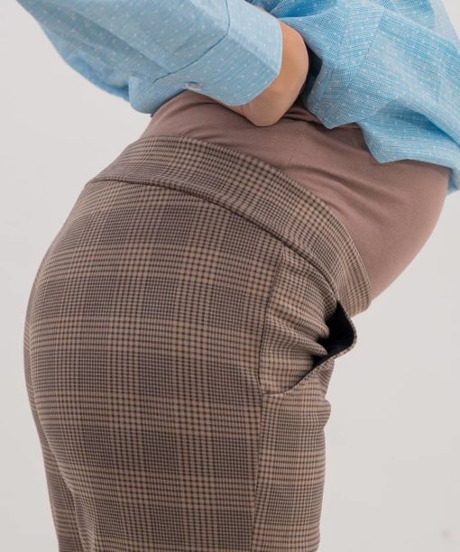 Бежево-серые брюки в клетку для беременных Forum