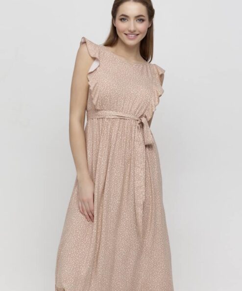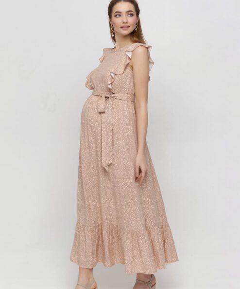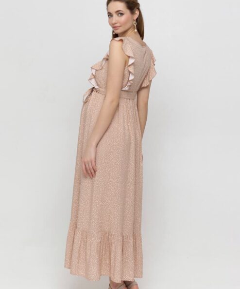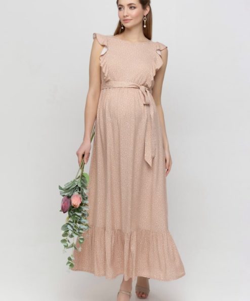 Бежевое платье для беременных и кормящих мам Freya