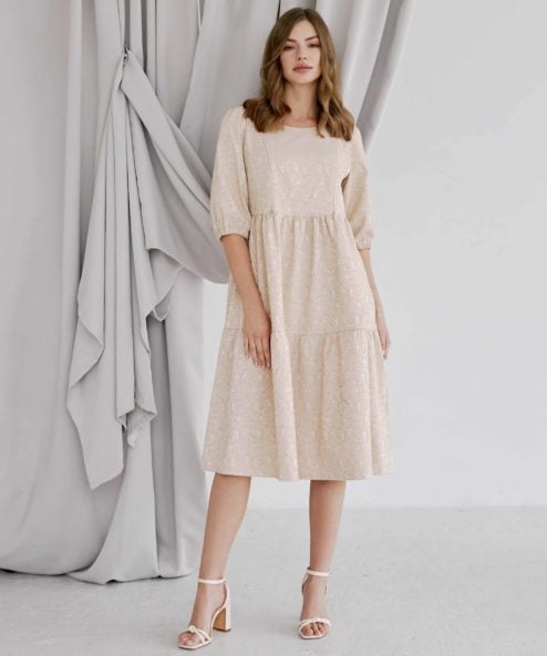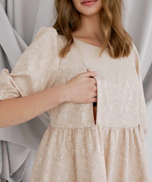 Бежевое платье для будущих и кормящих мам Cloud