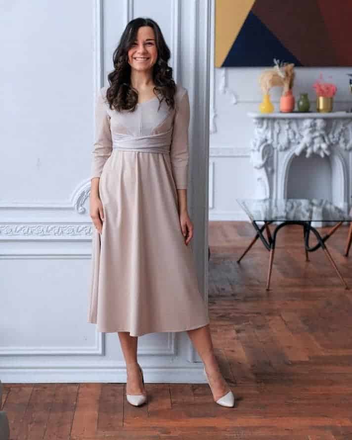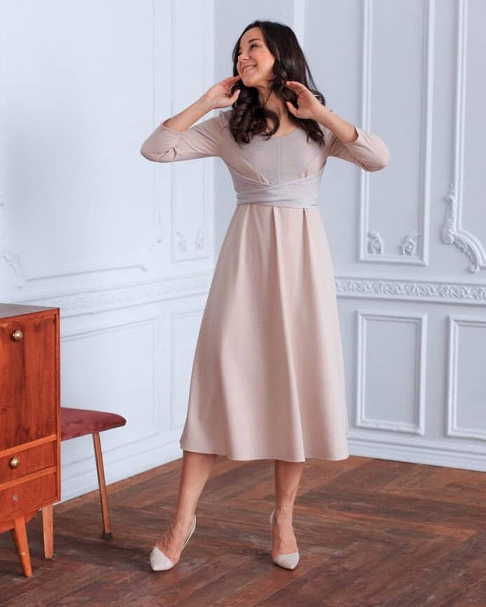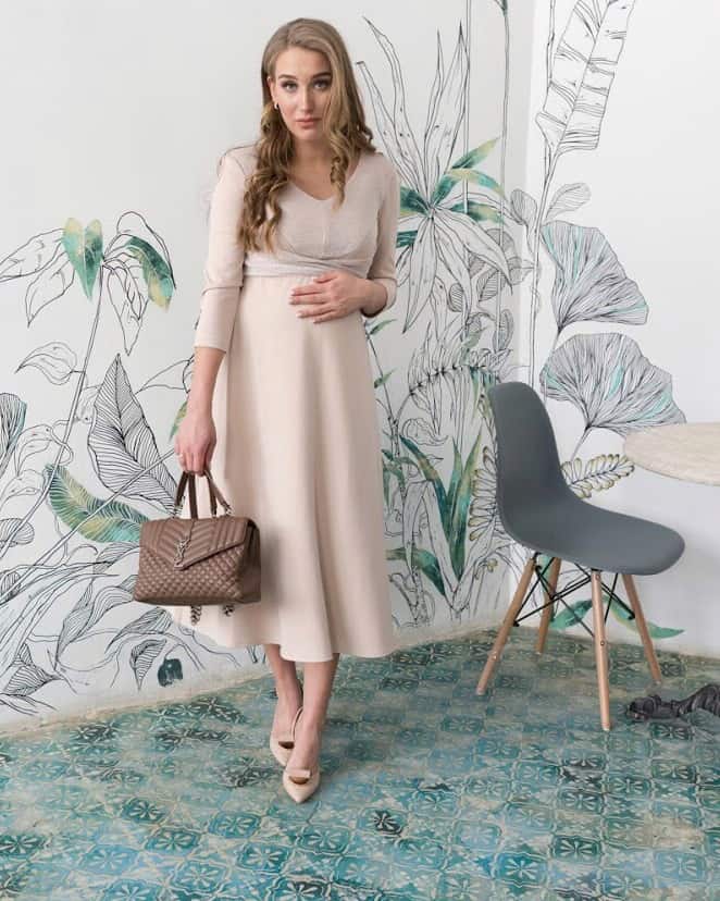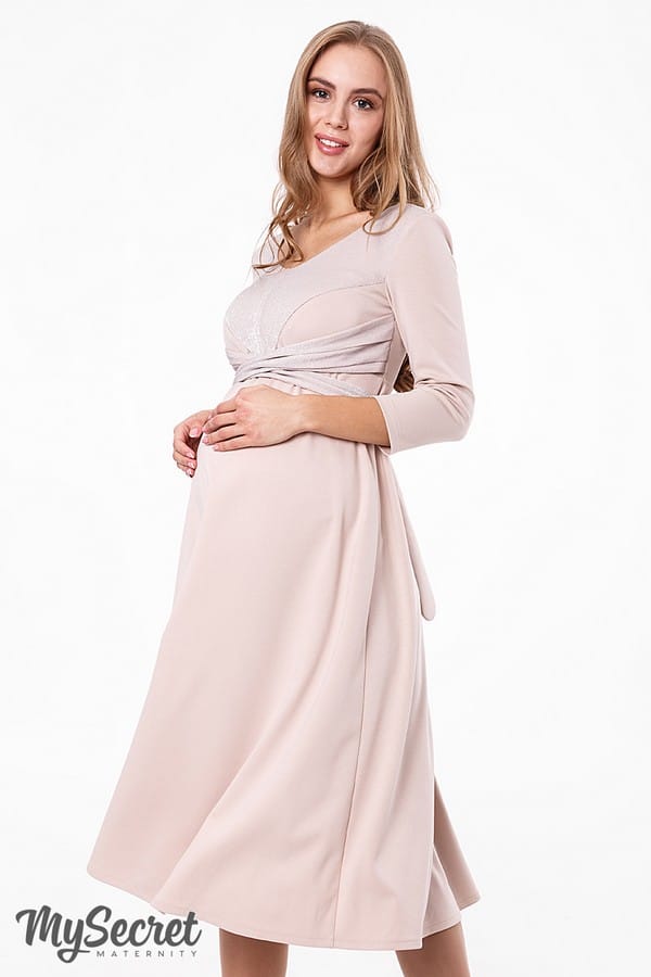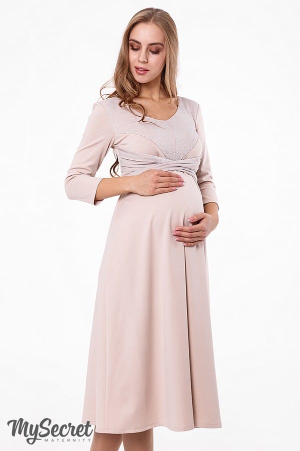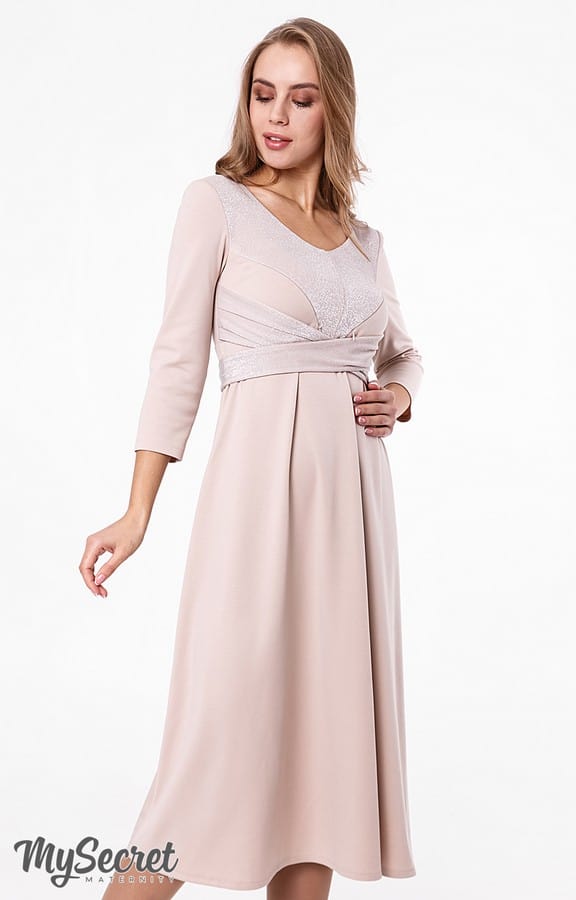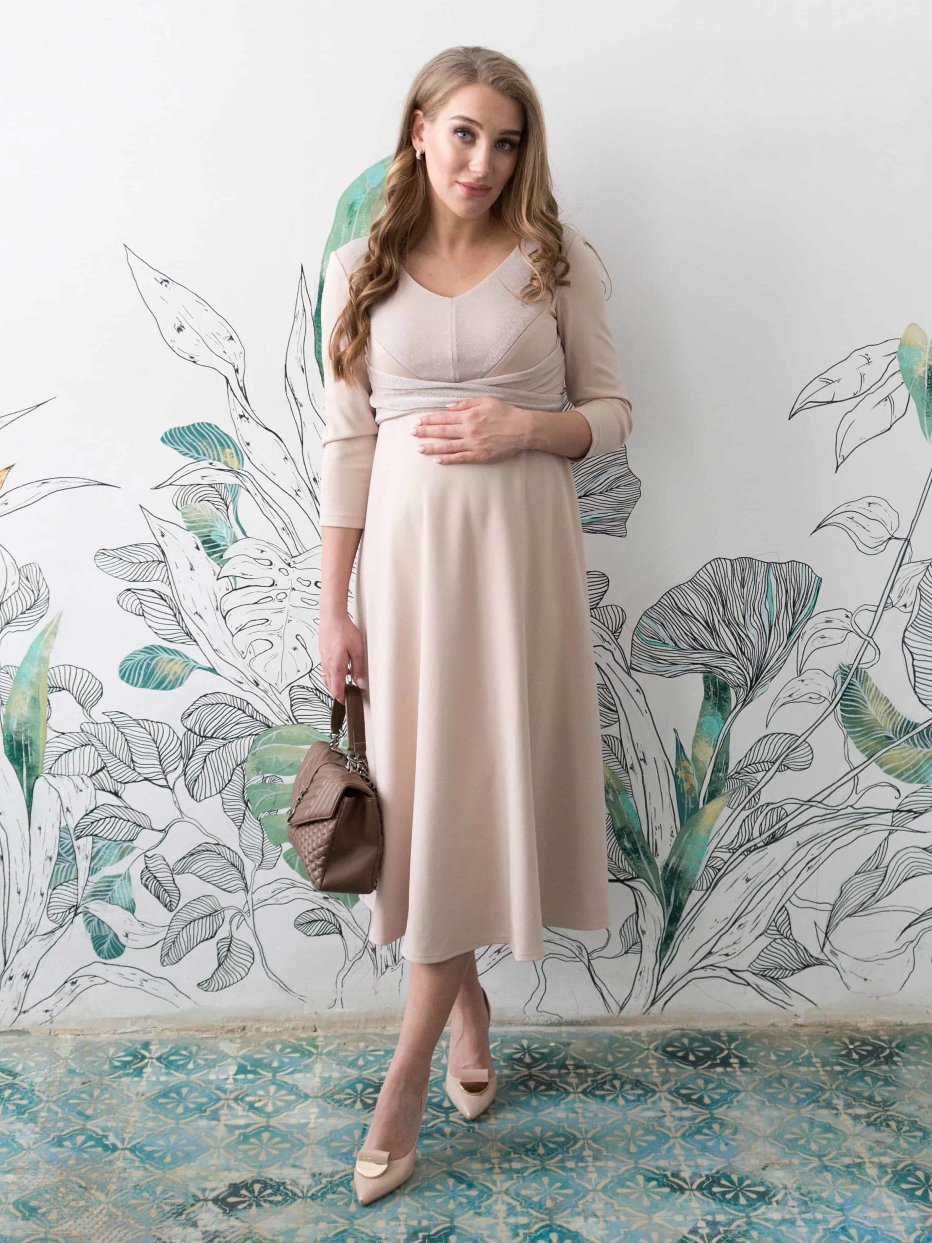 Бежевое платье для будущих и кормящих мам Elizabeth