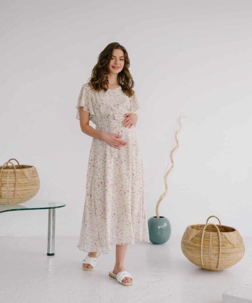 Женственное платье длины миди из струящегося шифона на подкладе из итальянской вискозы. В таком платье вы будете чувствовать себя утонченно и изысканно на любом сроке беременности и после. В комплекте пояс, платье можно носить с поясом и без. Для периода грудного вскармливания предназначены незаметные вертикальные молнии.