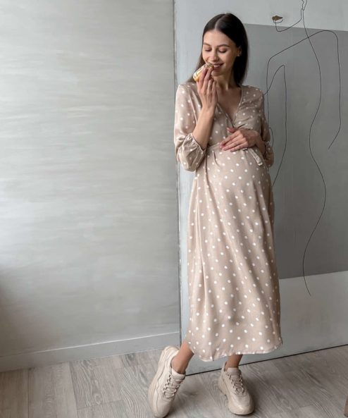 Женственное платье для беременных и кормящих из струящейся ткани.