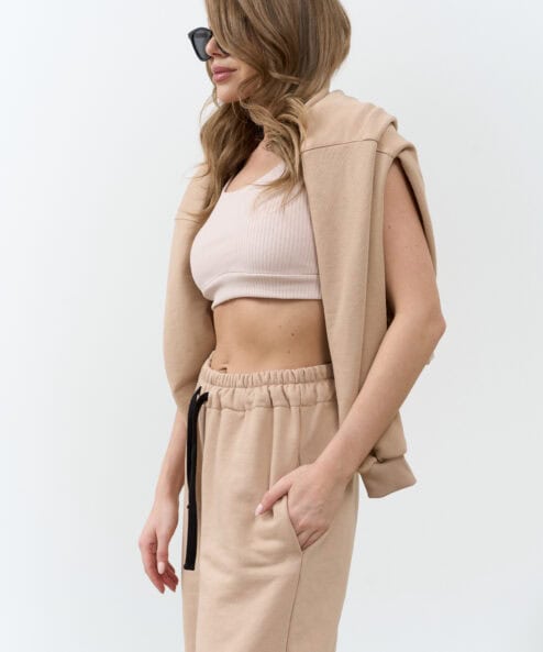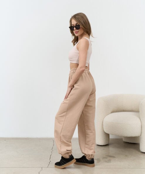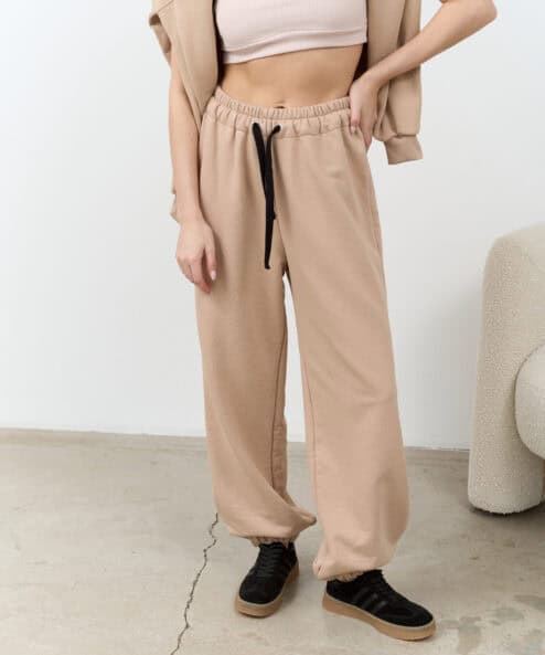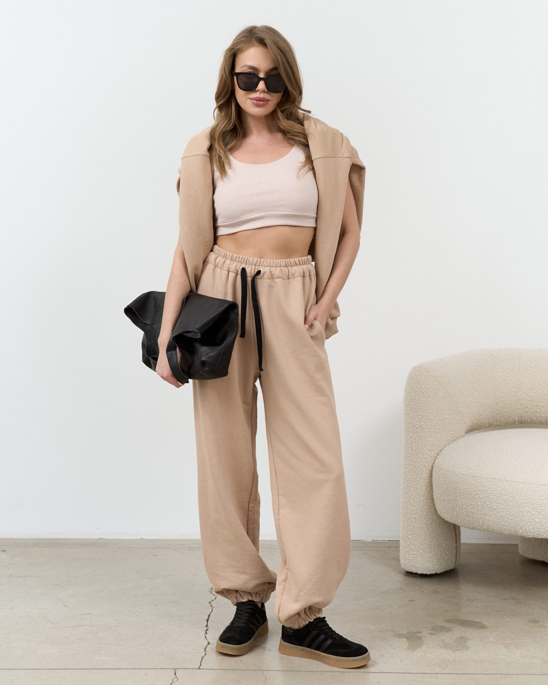 Брюки-джоггеры кроя оверсайз для будущих и кормящих мам, выполненные из футера высшего качества «пенье». В поясе шнурок для регулировки объема. Внизу — мягкие резинки. В комплект к брюкам вы можете приобрести бежевый свитшот HOT MOM CLUB.