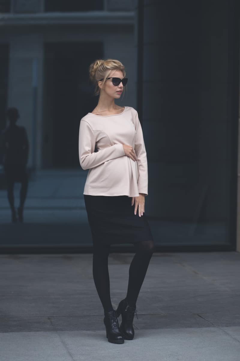 Стильный джемпер для будущих и кормящих мам с топом-баской. Замечательно смотрится с юбками-карандашами и брюками.