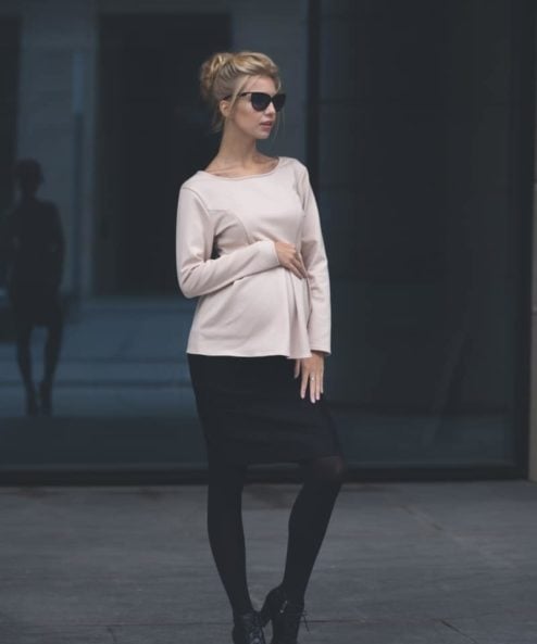 Топ оснащен секретами для кормления в виде потайных молний, что позволяет в любое время комфортно и аккуратно покормить малыша