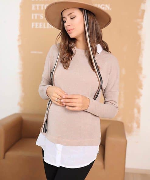 Бежевый джемпер для будущих и кормящих мам Leanor