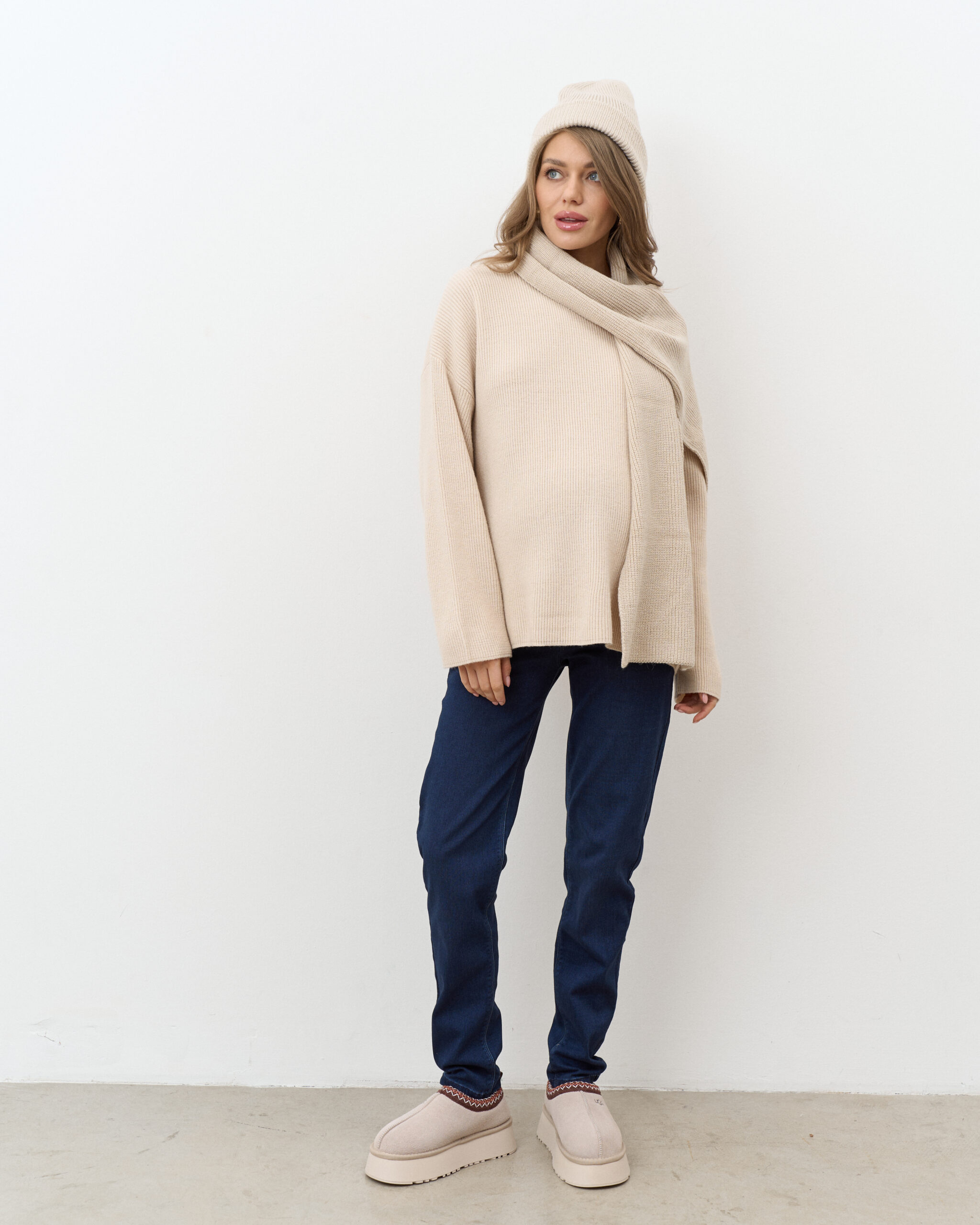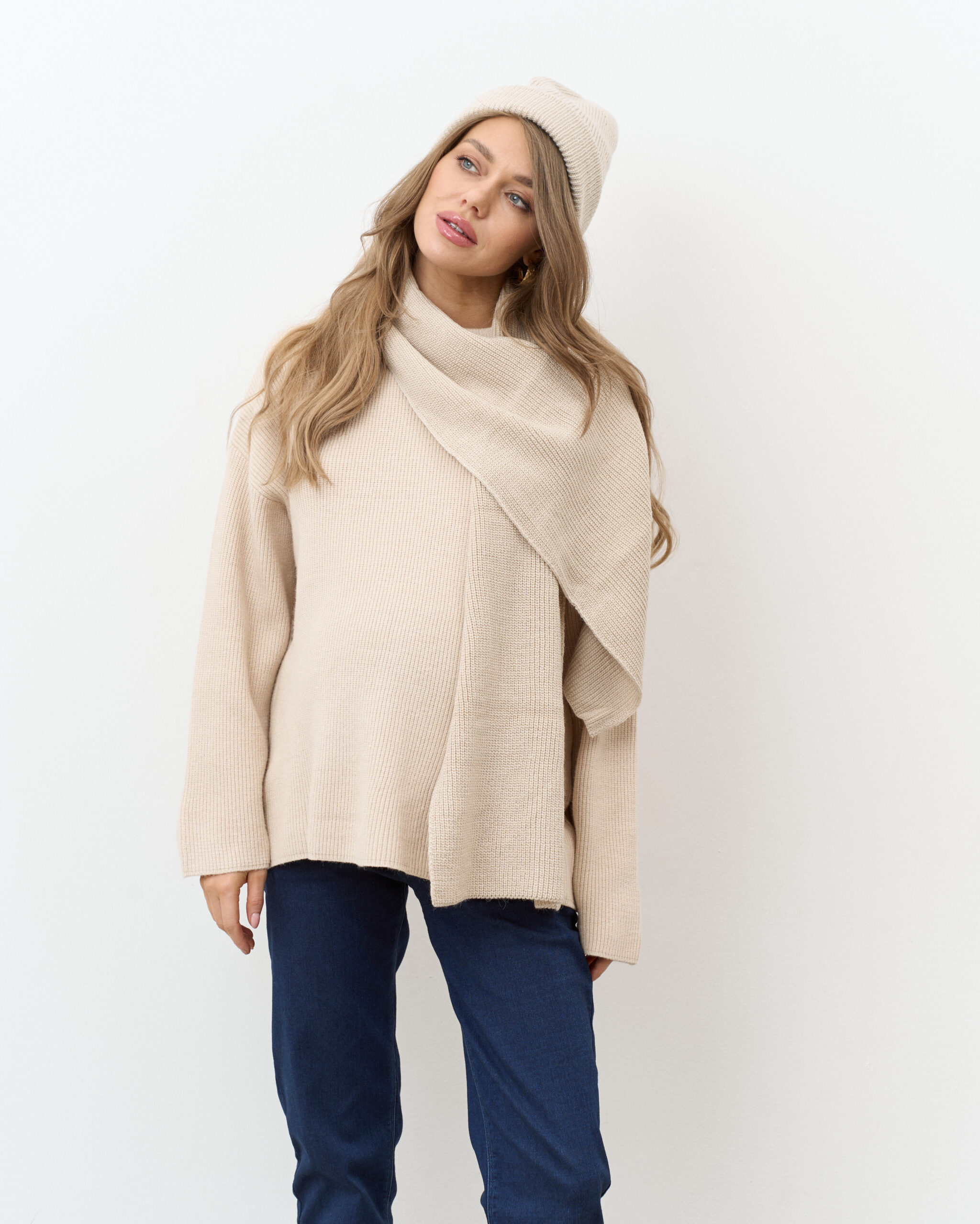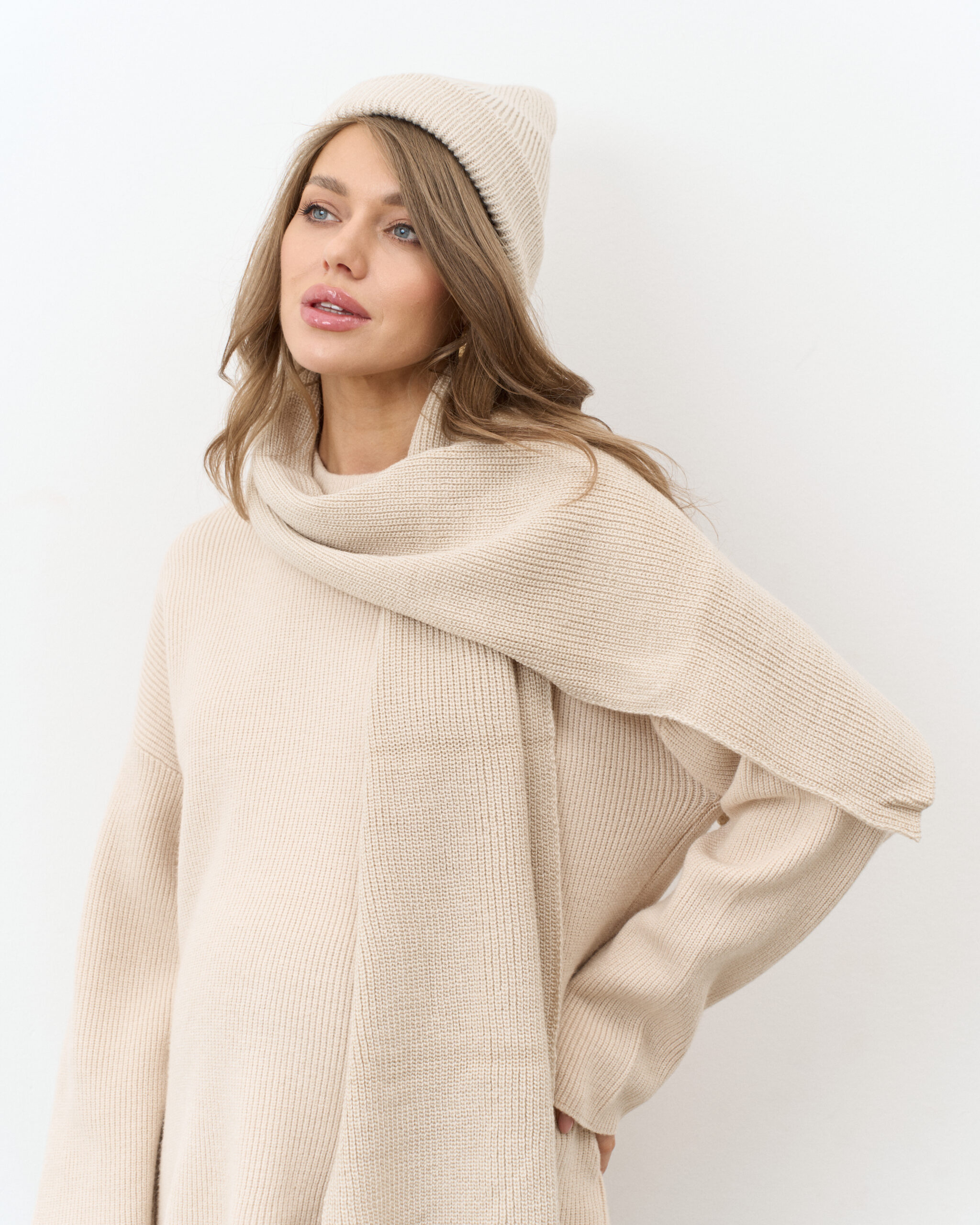 Бежевый комплект из шапки и шарфа Frost