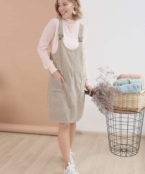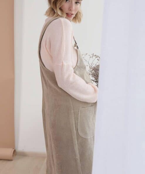 Бежевый вельветовый сарафан для будущих и кормящих мам Fonda