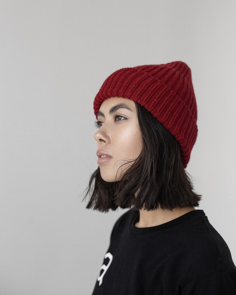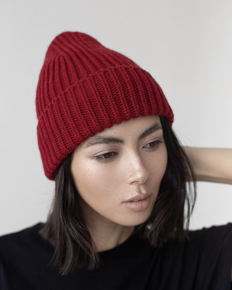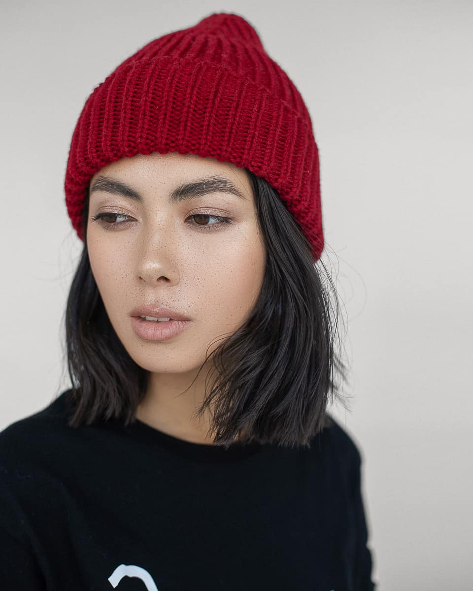 Шапка машинной вязки в современной форме бини. Не колется и не скатывается. Подходит на погоду от -20 до 10 градусов
