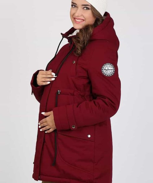 Бордовая теплая парка для беременных Inira