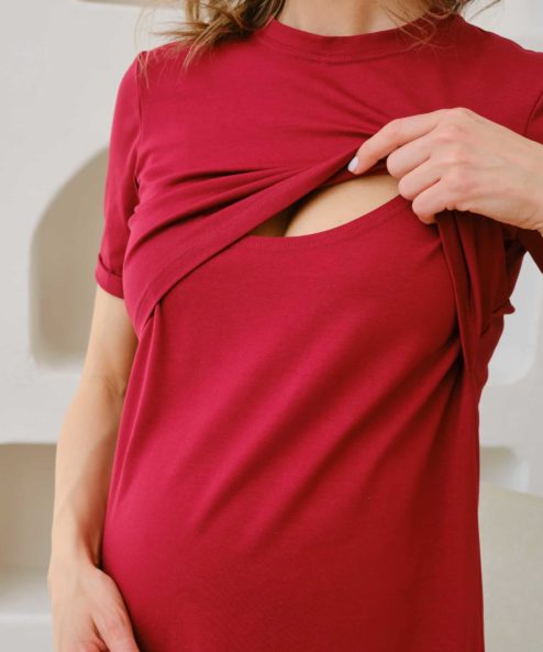 Бордовое платье-футболка для будущих и кормящих мам Casual