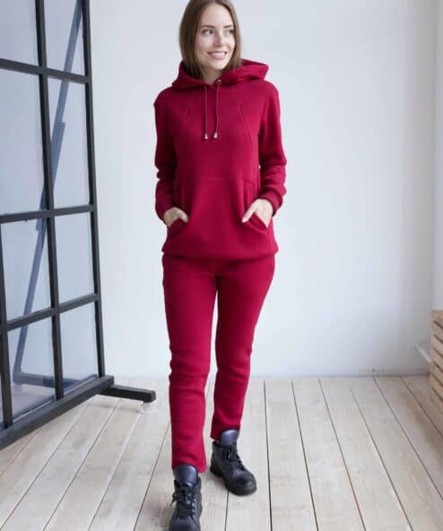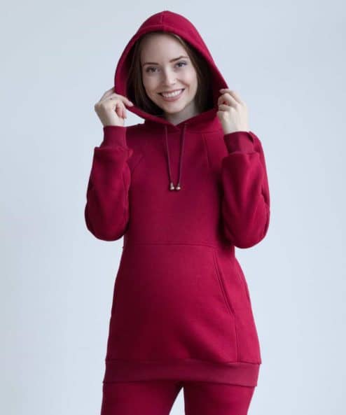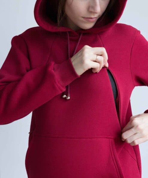 Бордовое теплое худи для будущих и кормящих мам Sport