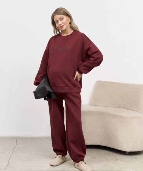 В комплект к брюкам вы можете приобрести теплый свитшот Mommy либо худи Juna