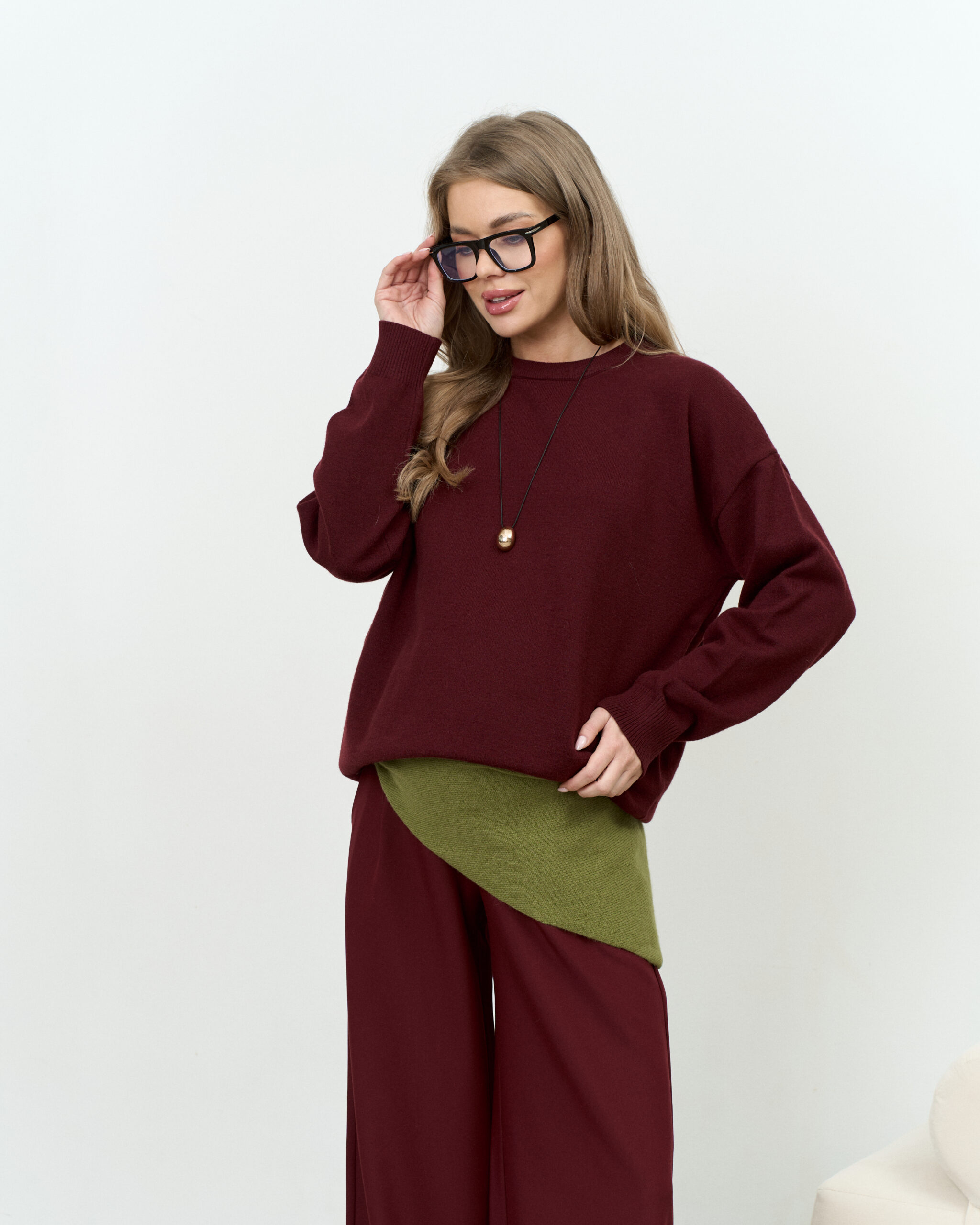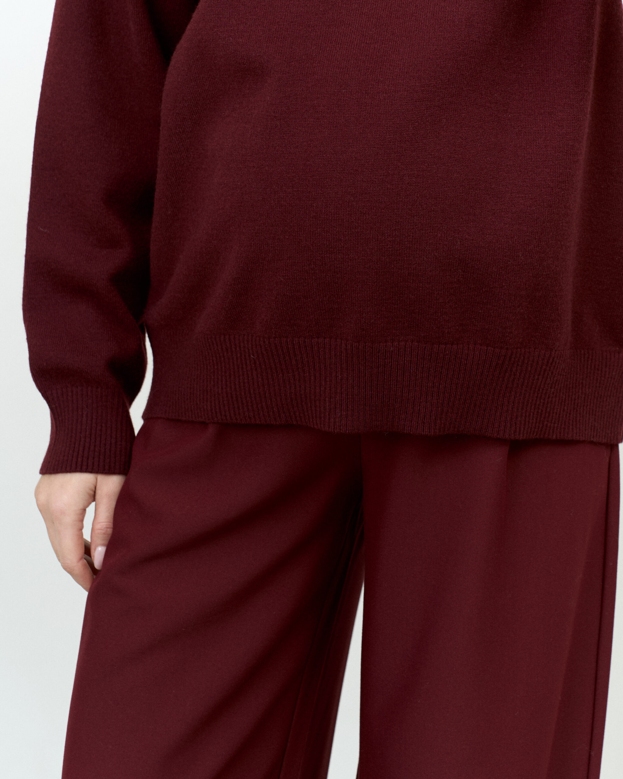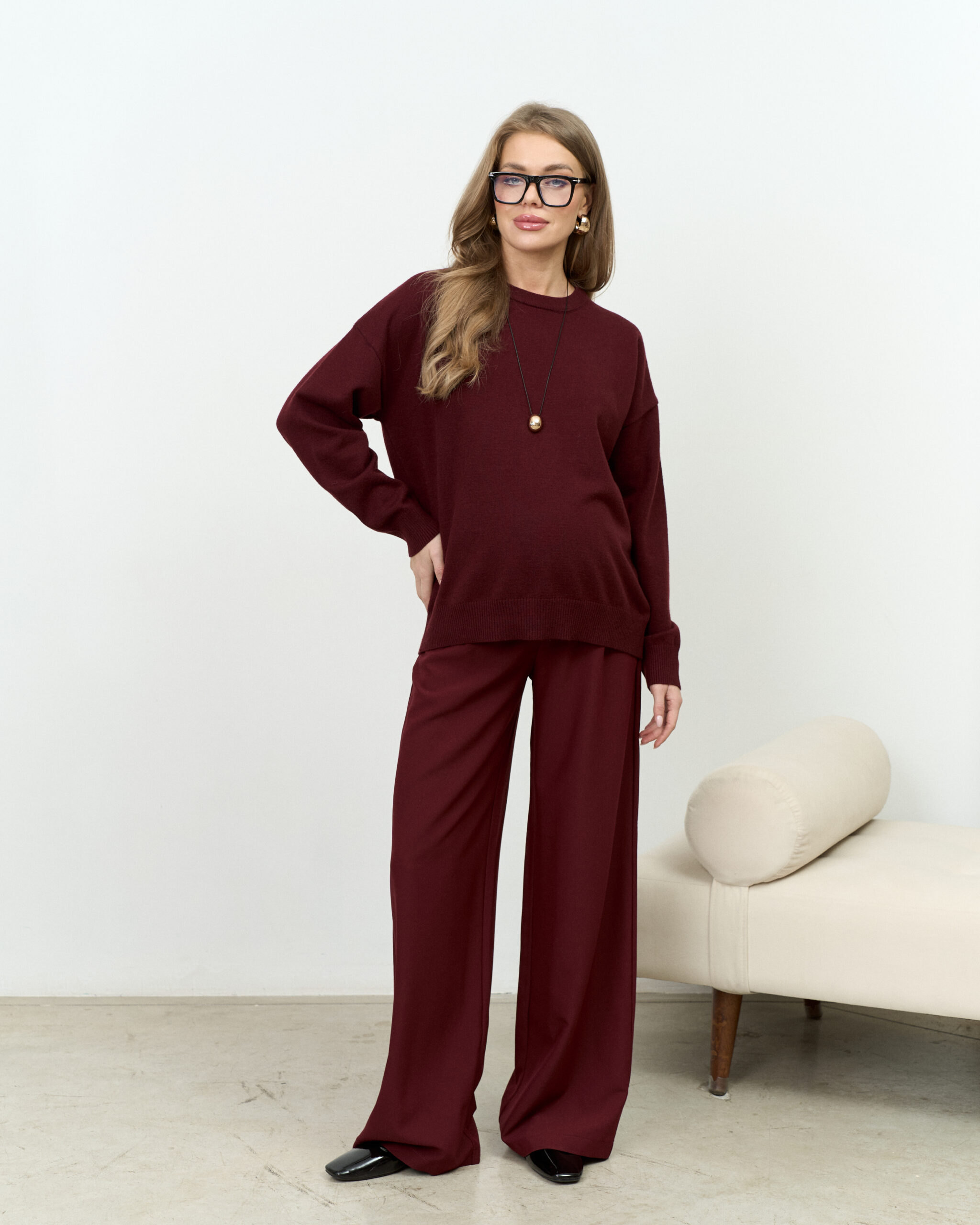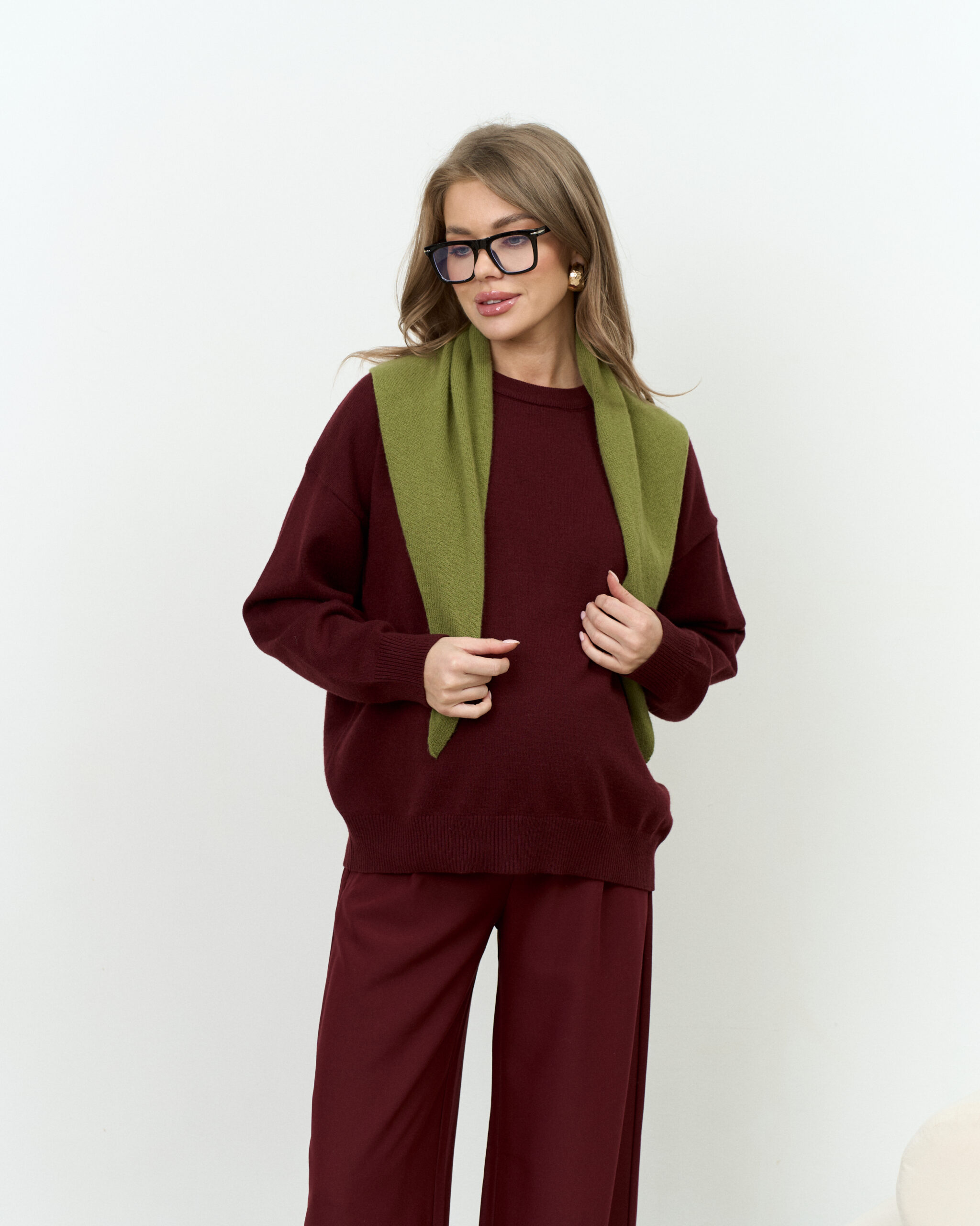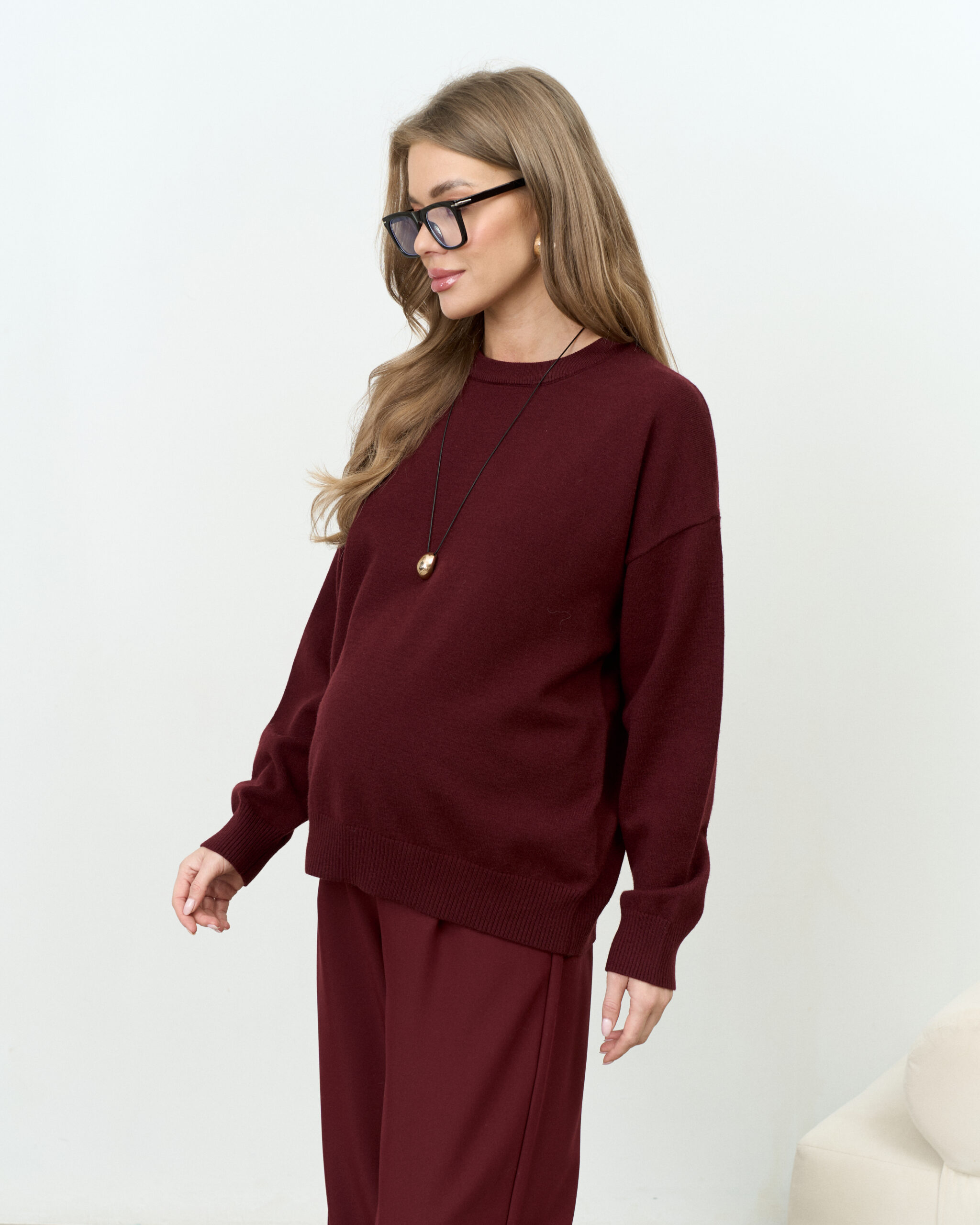 Базовый джемпер с круглой горловиной и спущенной линией плеч, который подойдет на любой срок беременности и после. Мягкая эластичная вязка и мягкий состав пряжи подарят комфорт в любое время года.