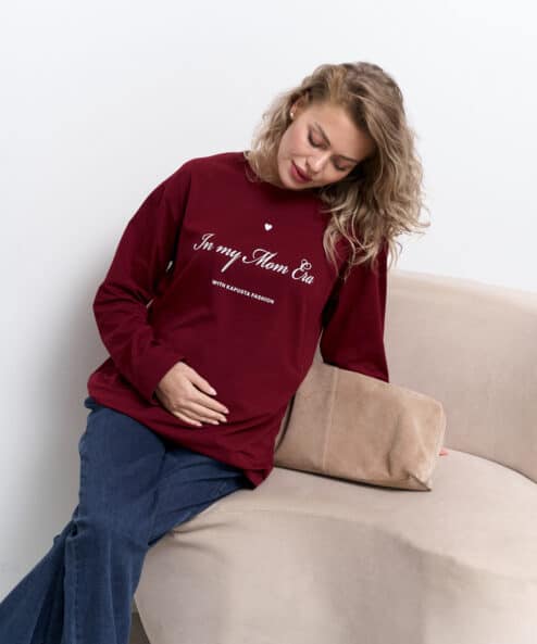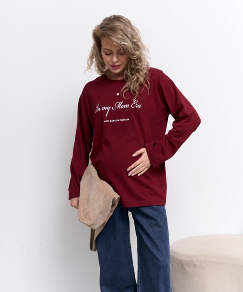 Трендовый оверсайз лонгслив из хлопкового трикотажа. Подойдет на весь срок беременности и после. Для грудного кормления – секреты в виде потайных молний.