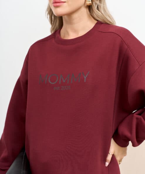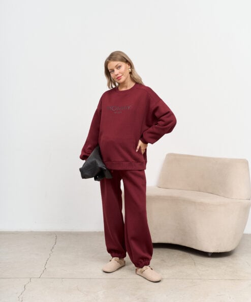 Темно-бордовый теплый свитшот для будущих и кормящих мам MOMMY est 2025