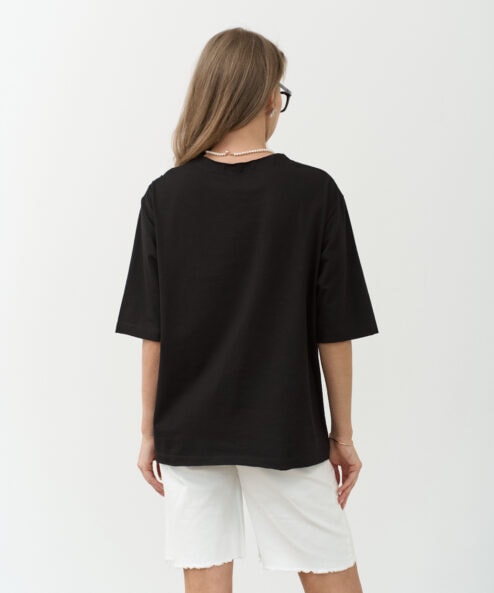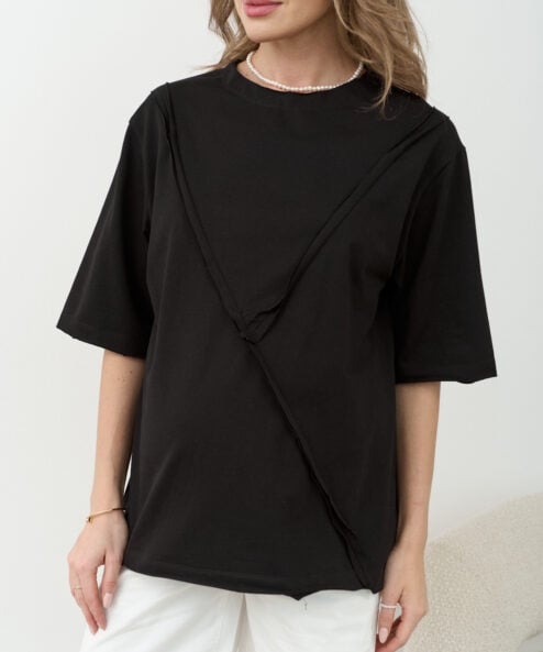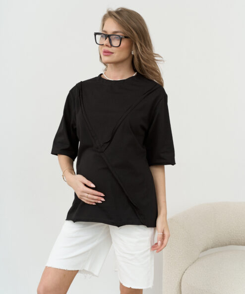 Футболка актуального кроя оверсайз из хлопкового трикотажа. Подойдет для любого срока беременности и после. Для кормления малыша выполнены удобные вертикальные молнии.
