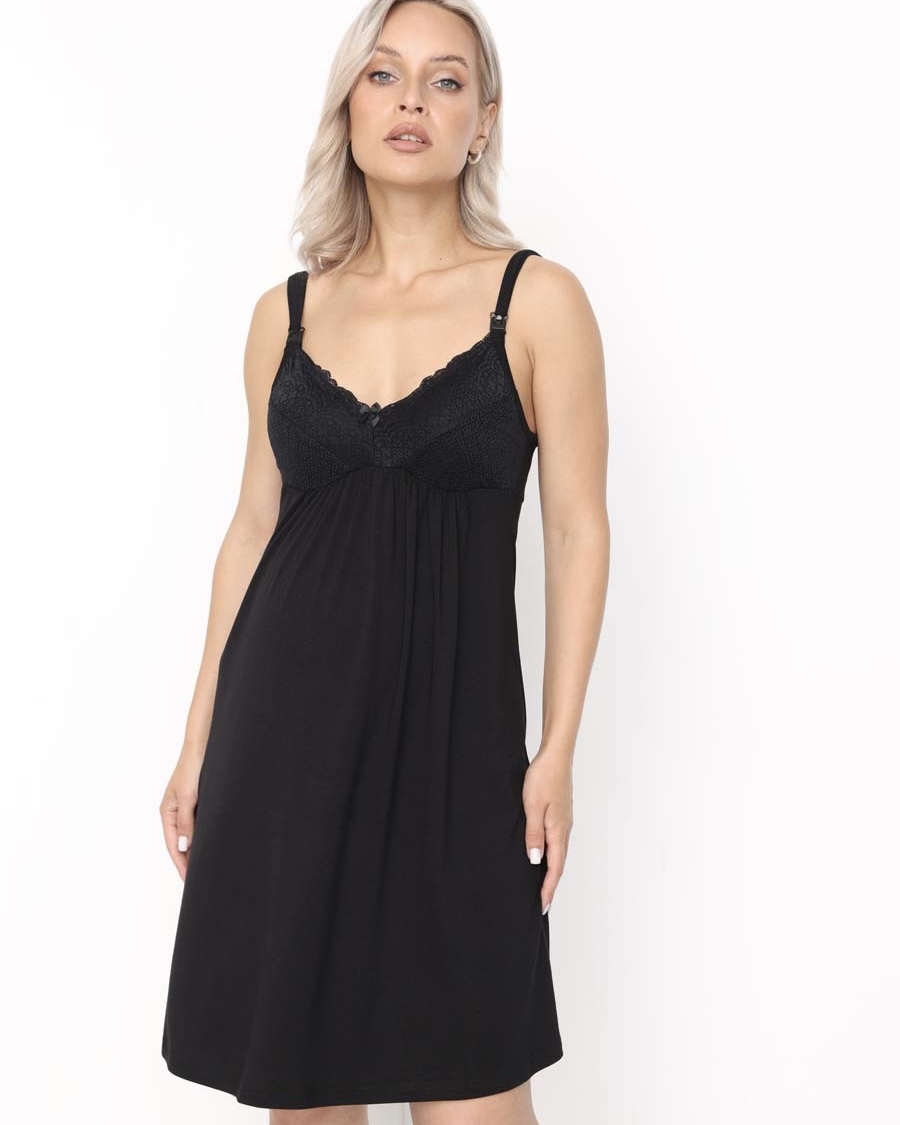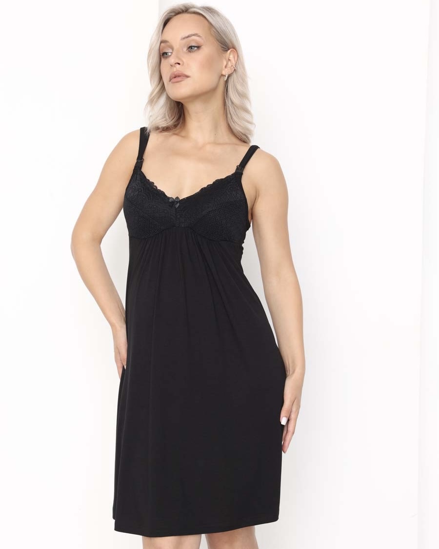 Уютная сорочка для беременных и кормящих женщин в длине миди. Выполнена из мягкой и приятной к телу вискозы с секретом для кормления в виде отстегивающейся бретели.