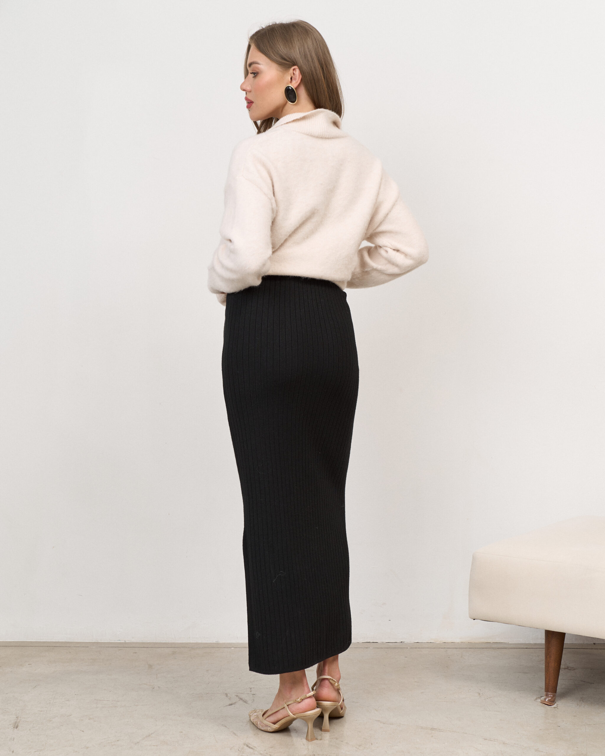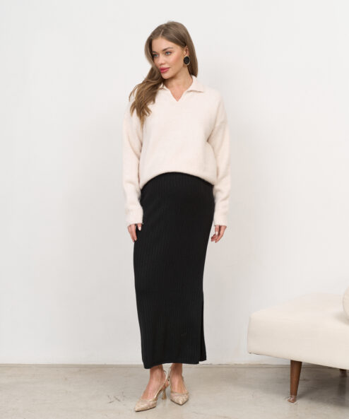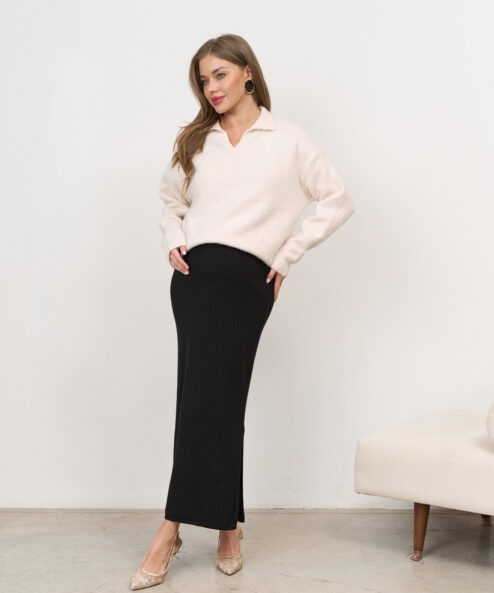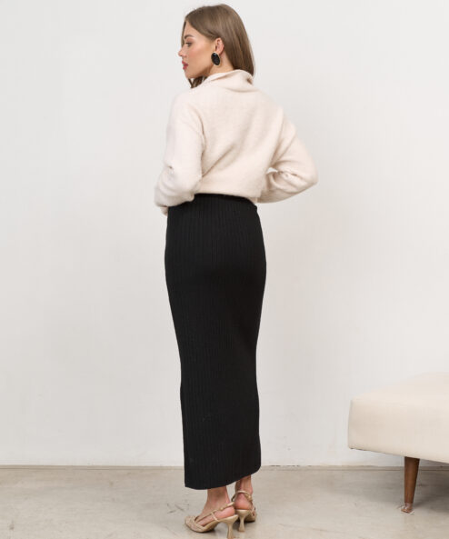 Черная трикотажная юбка в рубчик Peony