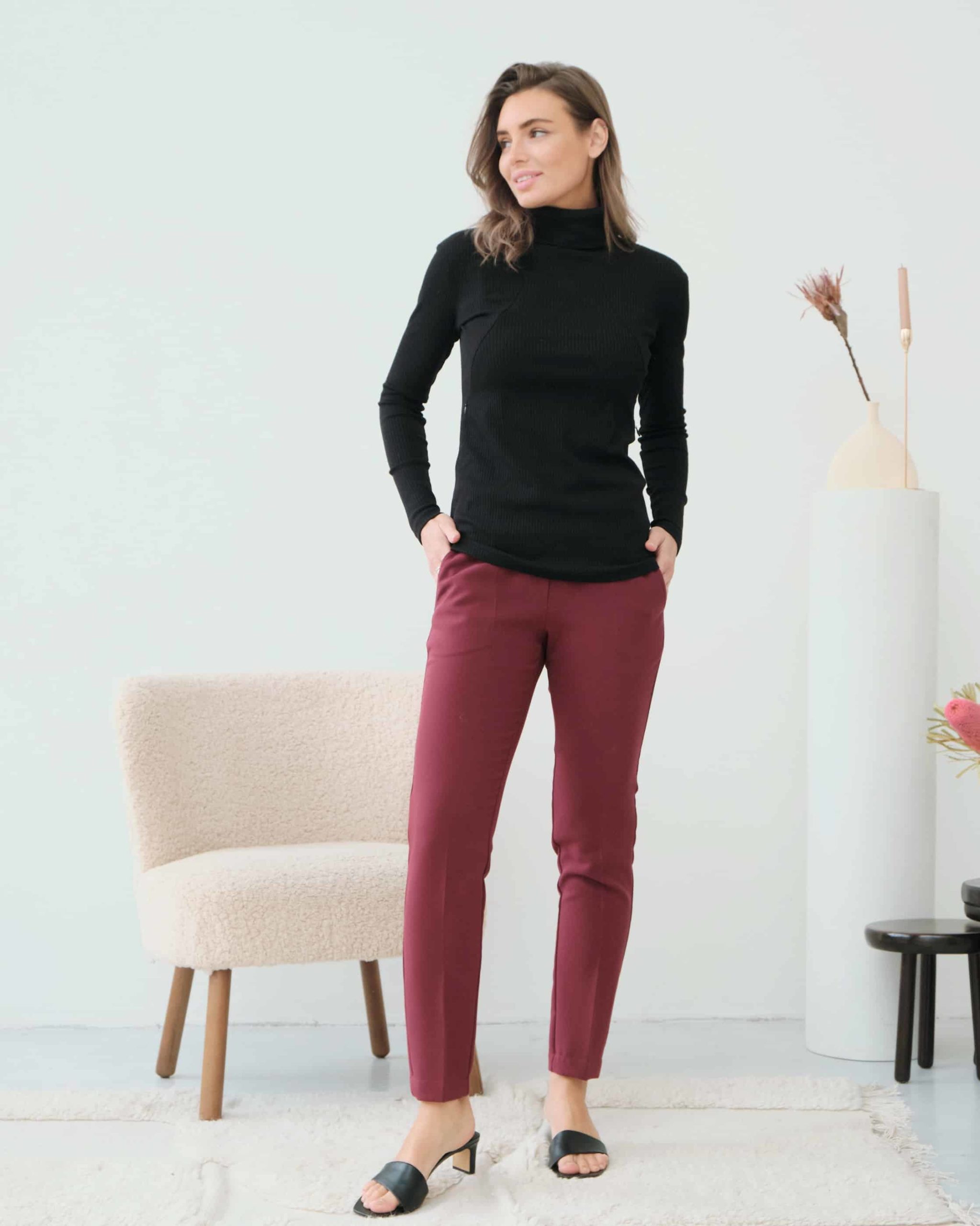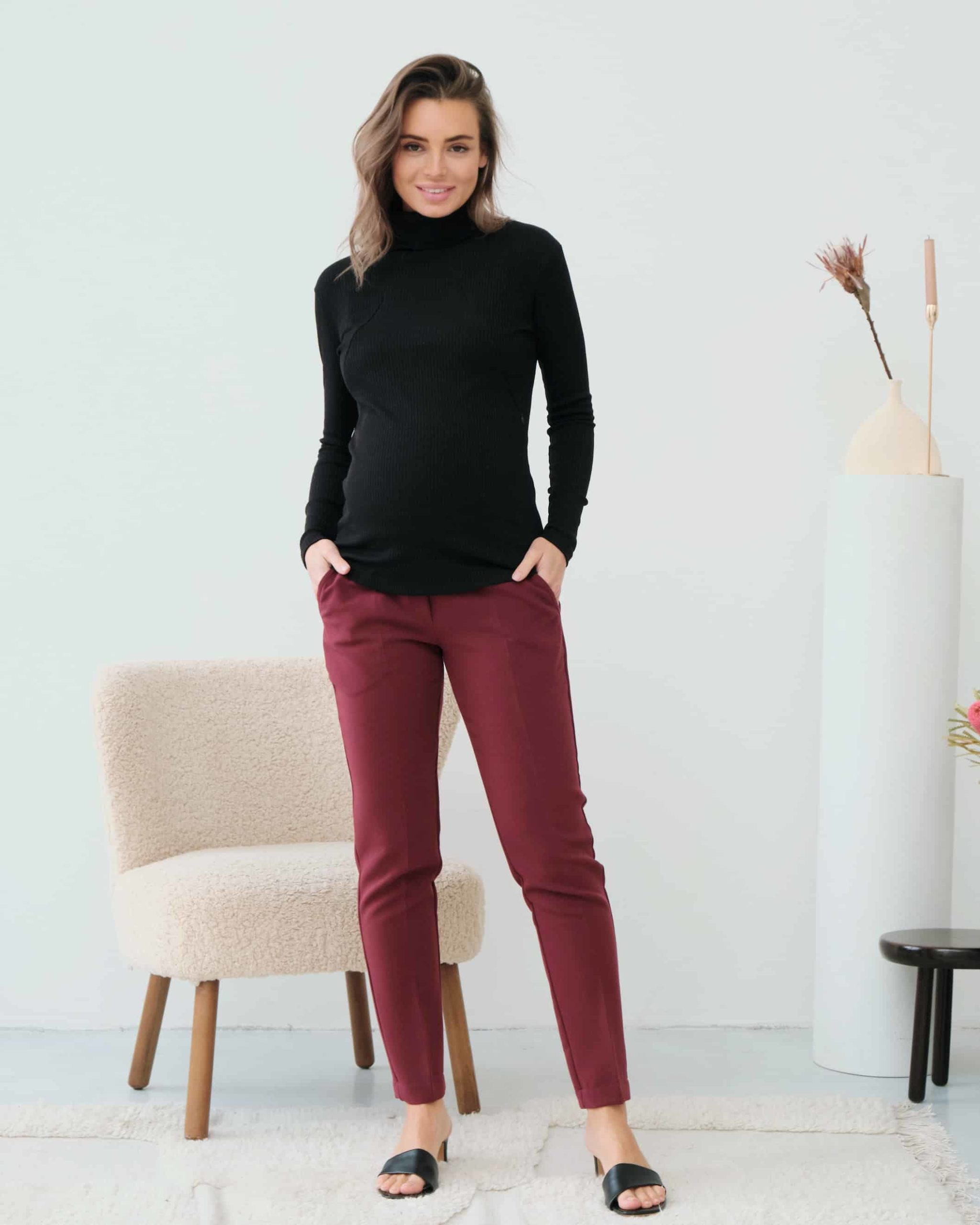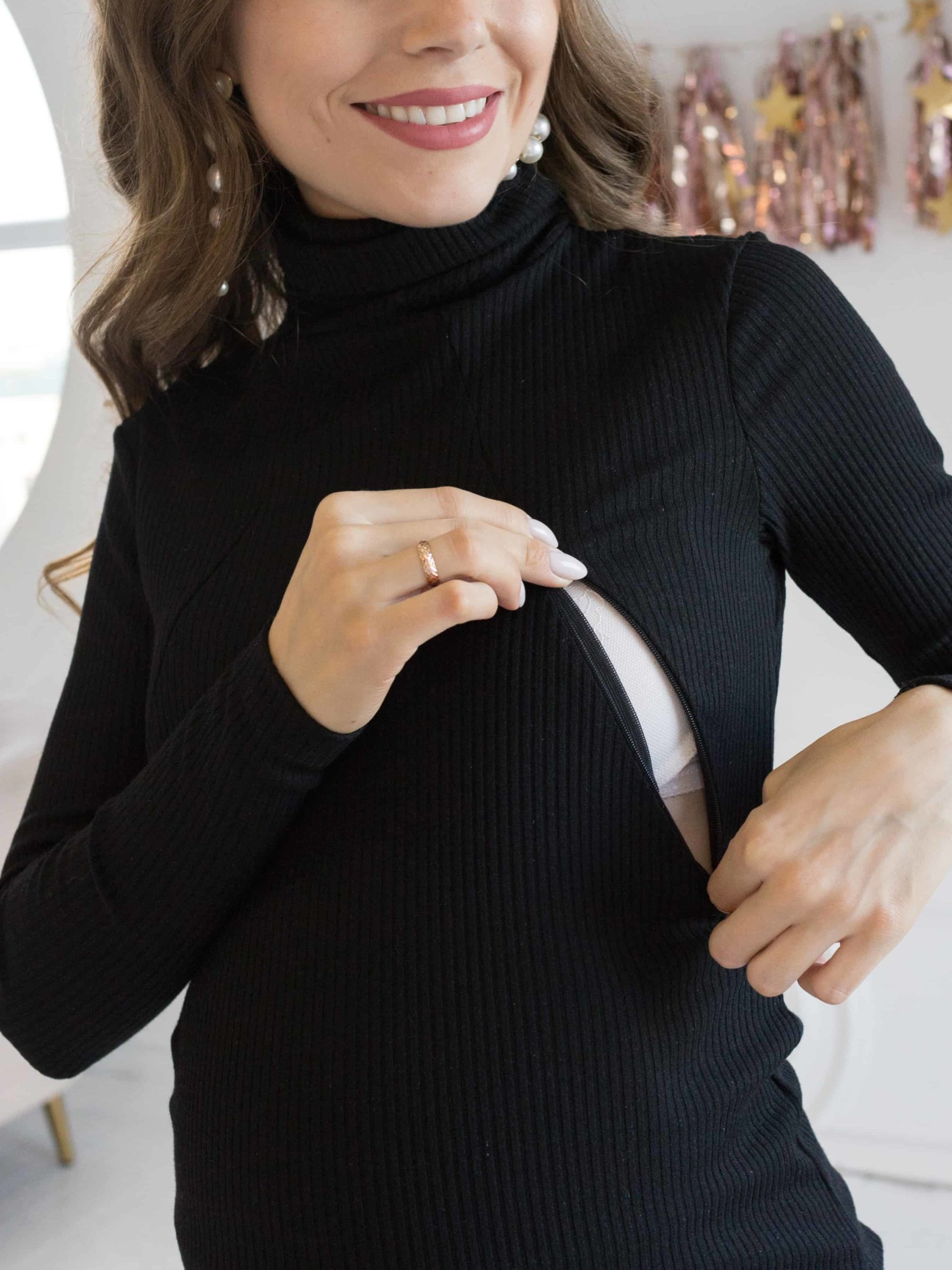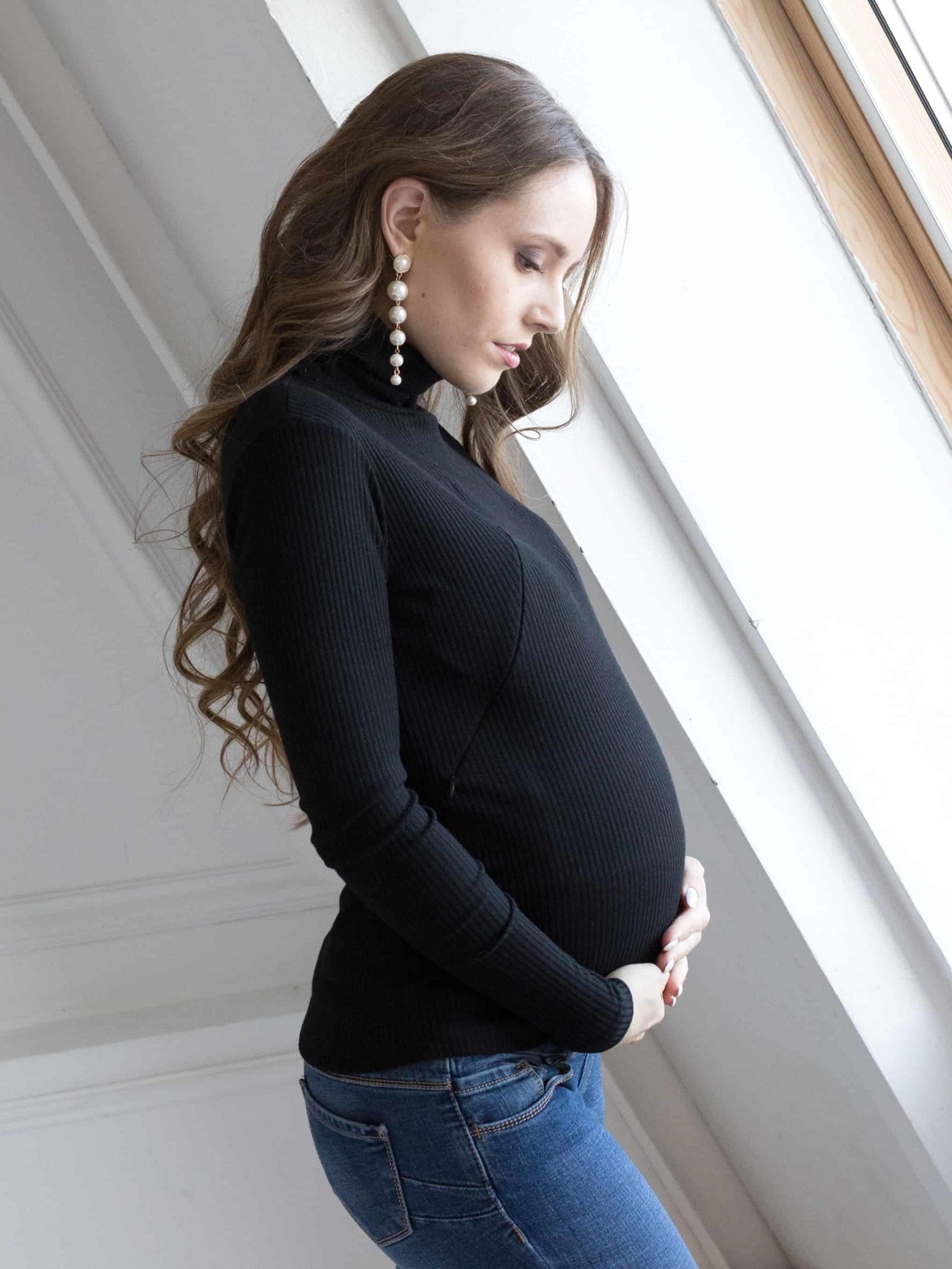 Базовая водолазка — неотъемлемый элемент гардероба беременных и кормящих мам. Мягкая ткань-лапша и комфортный крой позволят носить эту водолазку на любом сроке беременности и после. А базовый цвет легко впишет ее в любой гардероб.