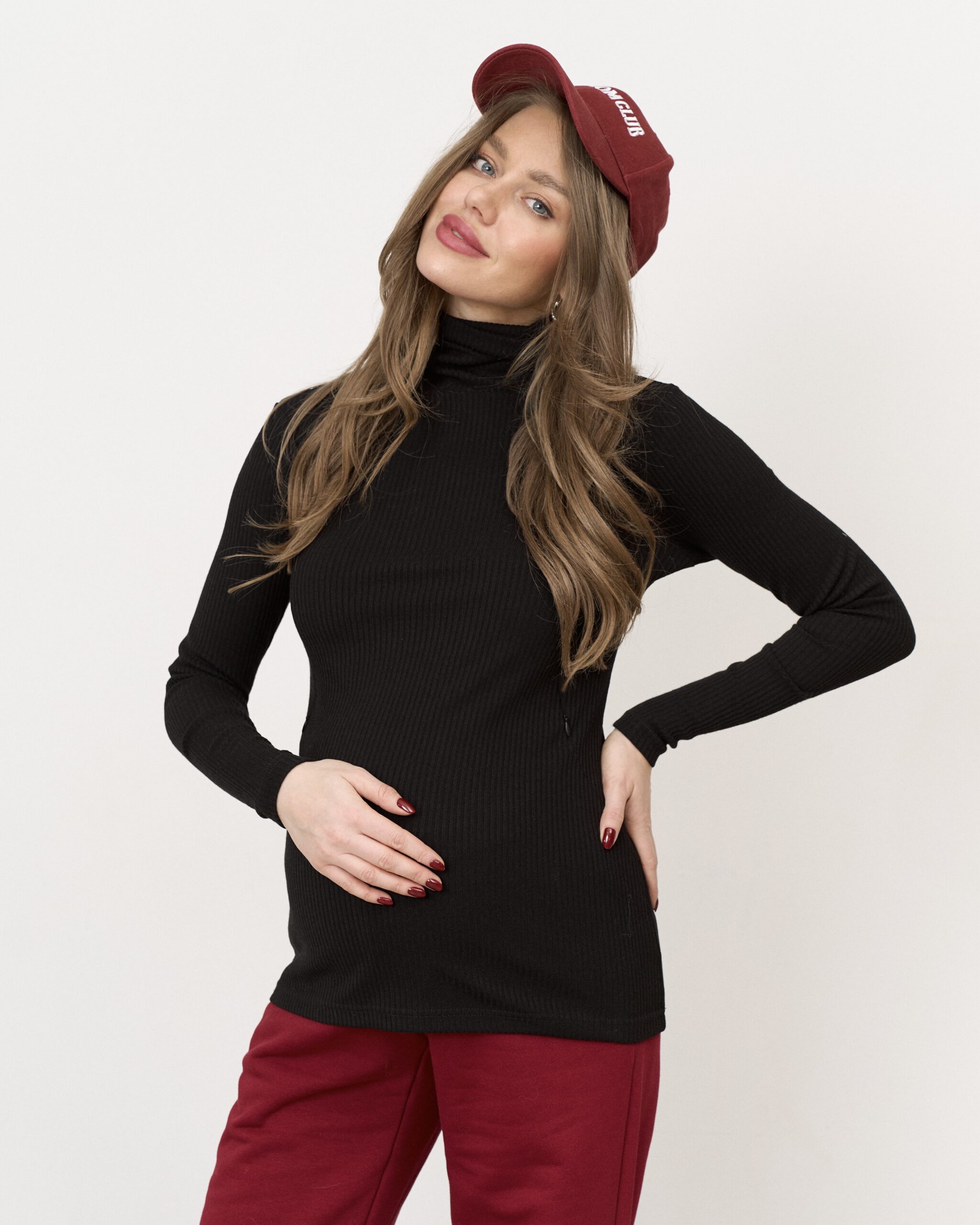 Водолазка — неотъемлемый элемент гардероба беременных и кормящих мам. Мягкая ткань-лапша и комфортный крой позволят носить эту водолазку на любом сроке беременности и после. А базовый цвет легко впишет ее в любой гардероб.