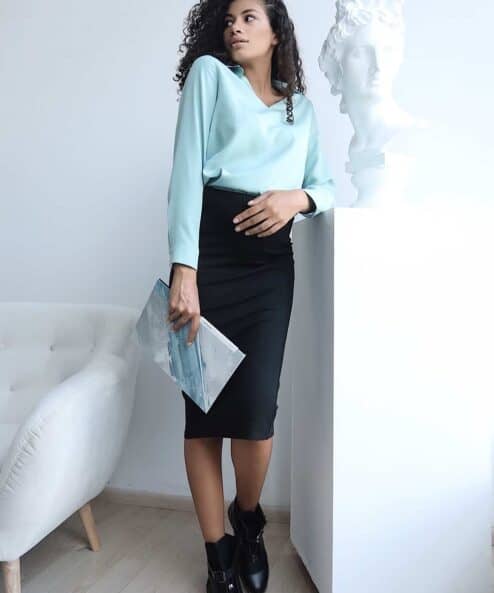 Базовая, универсальная юбка-карандаш. Модель выполнена из эластичного материала с трикотажными вставками по бокам, что позволяет составлять множество стильных образов на протяжении всех сроков беременности и даже после.