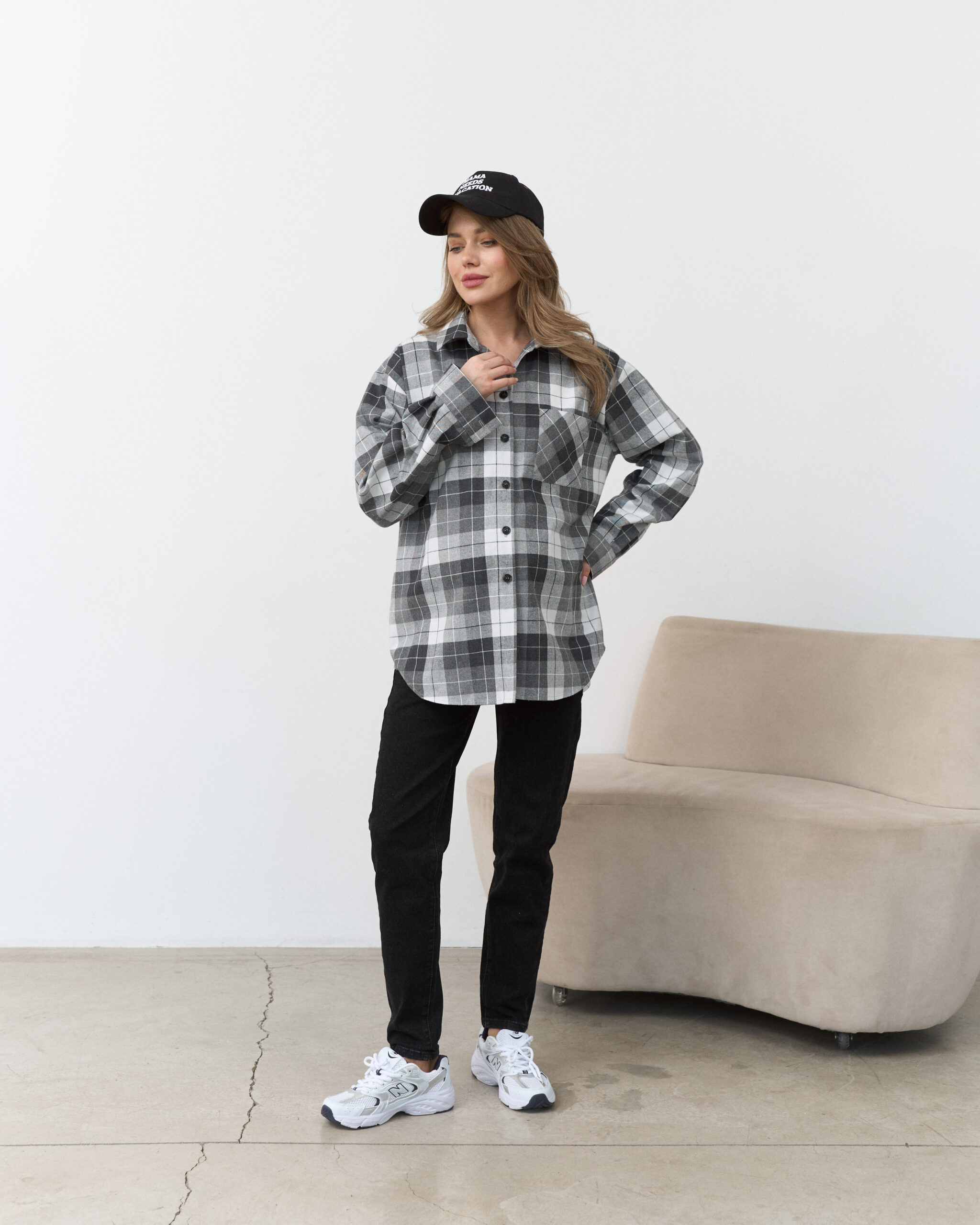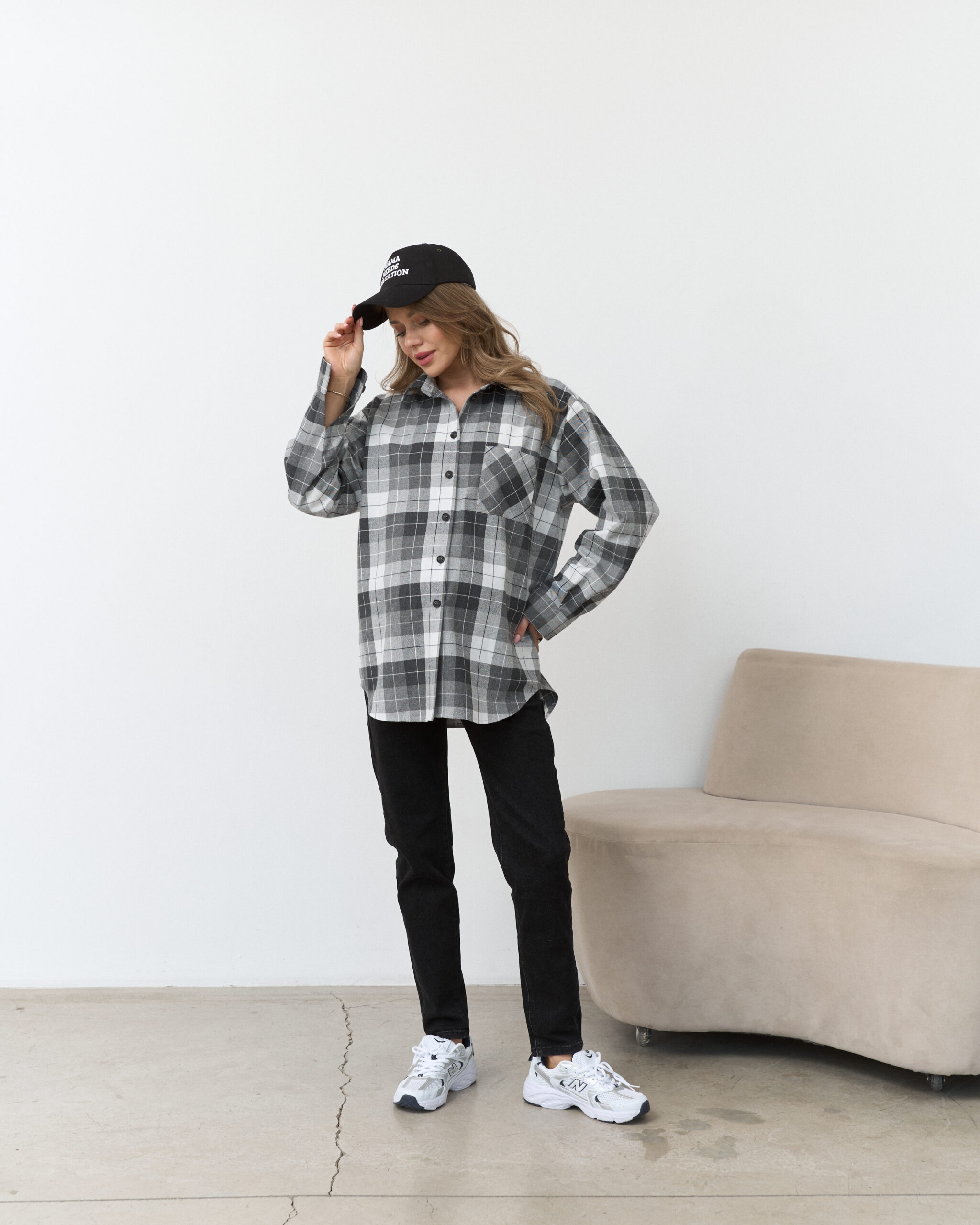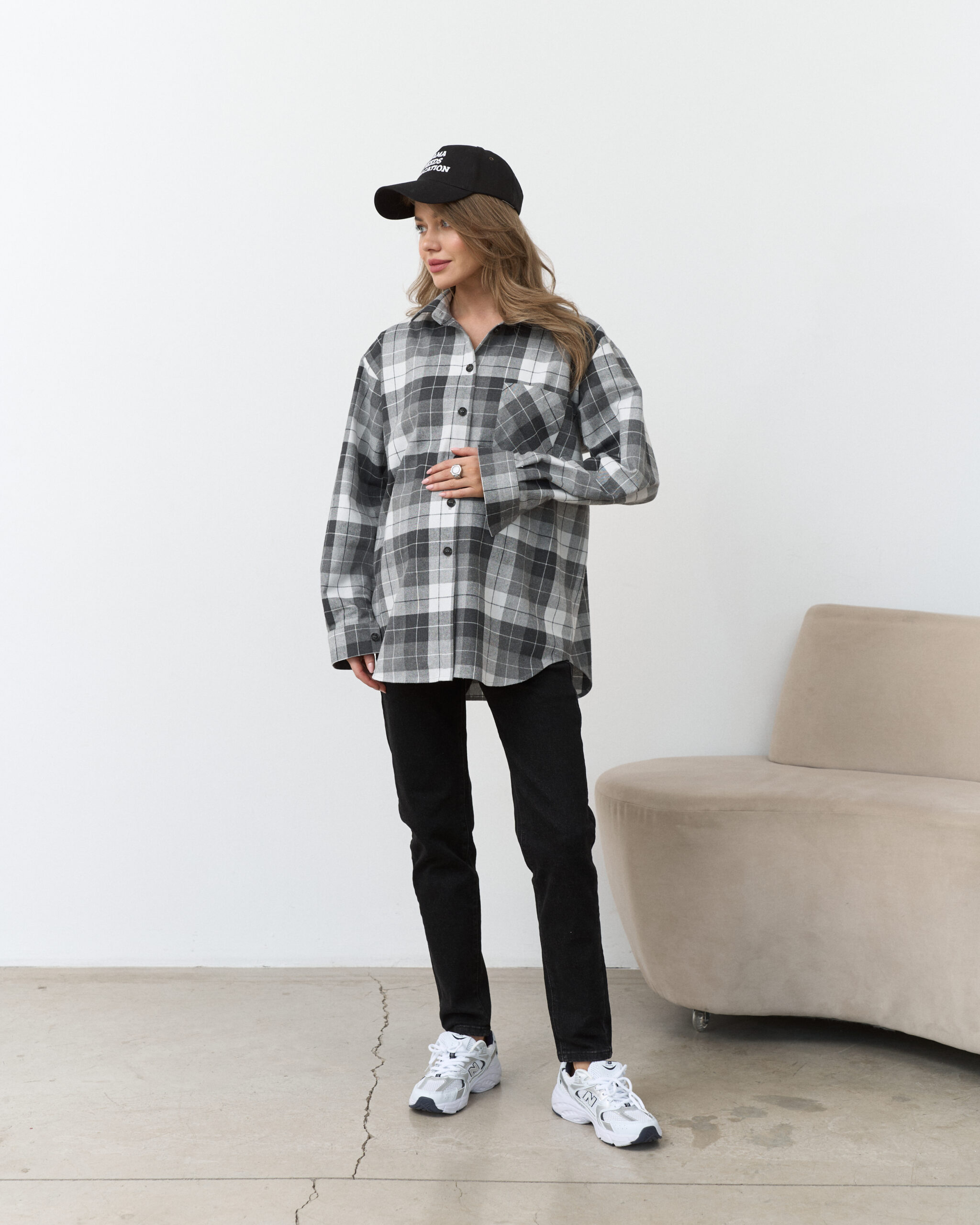 Стильная удлиненная рубашка в клетку, которая подойдет на весь срок беременности и после. Такую рубашку можно сочетать с брюками, шортами, джинсами и даже платьями. А натуральный состав ткани подарит комфорт в любой ситуации.